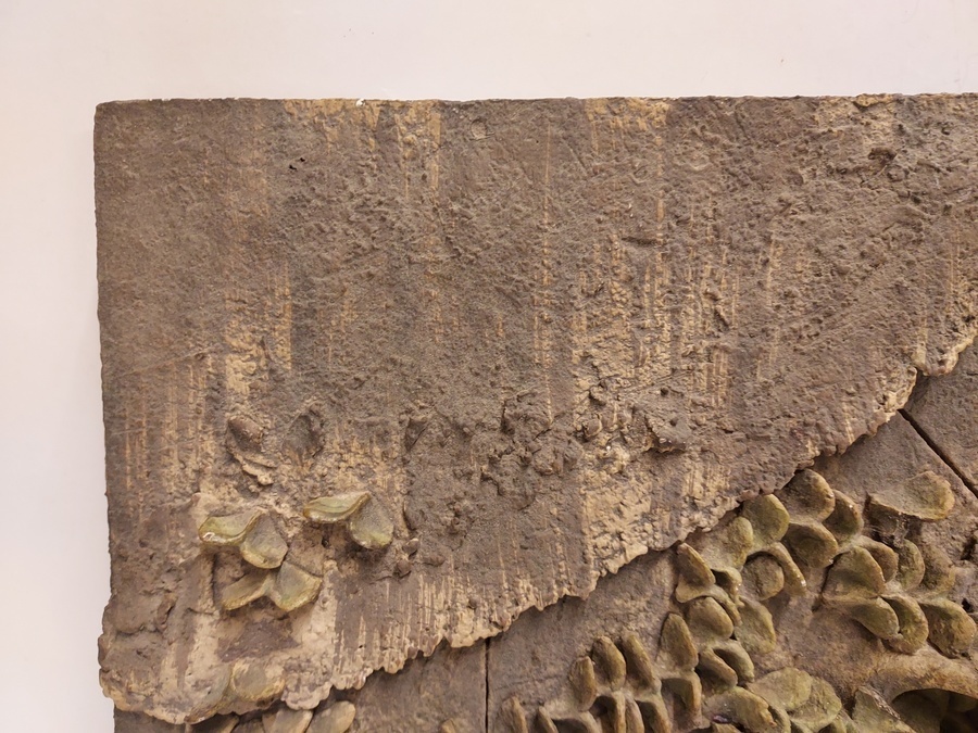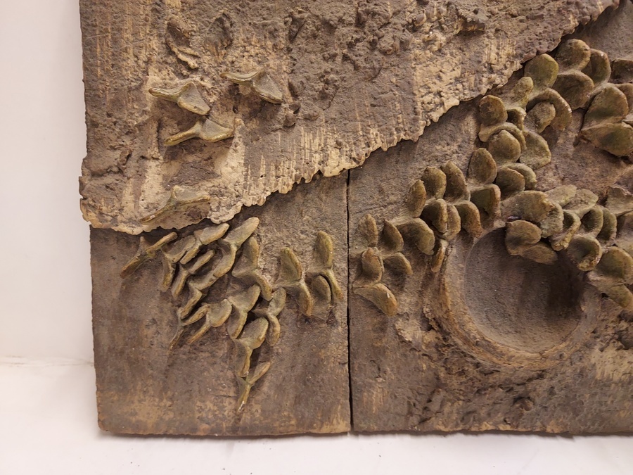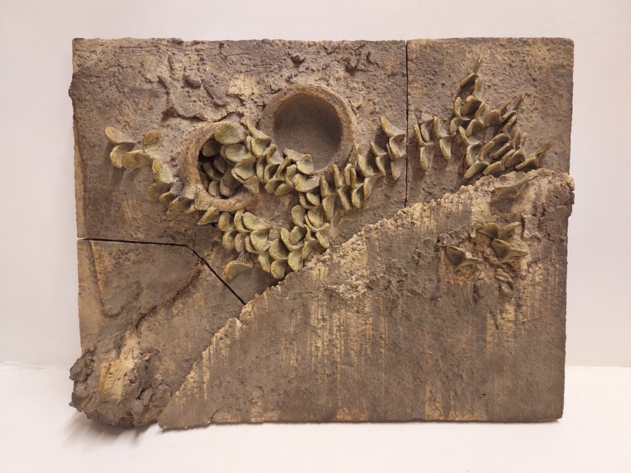 Brutalistische tegel "vlucht uit het aardse nest" Uitvoering eigen studio Giethoorn.