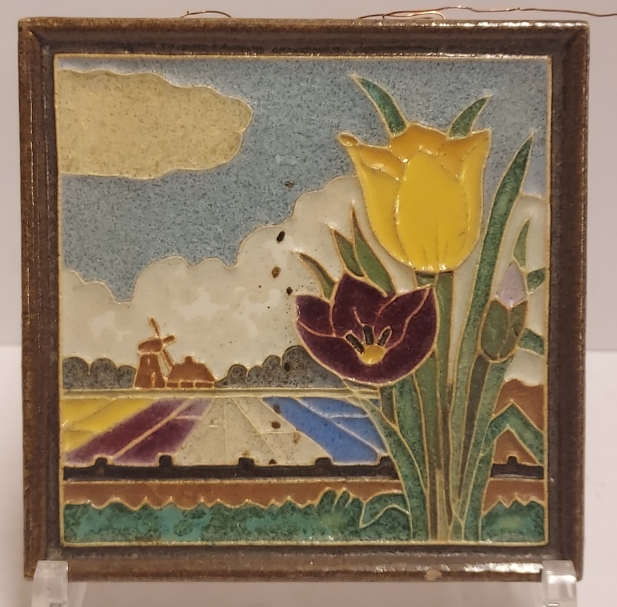 Decor van een Hollands bollenveld. Achterzijde met fabrieksmerk.