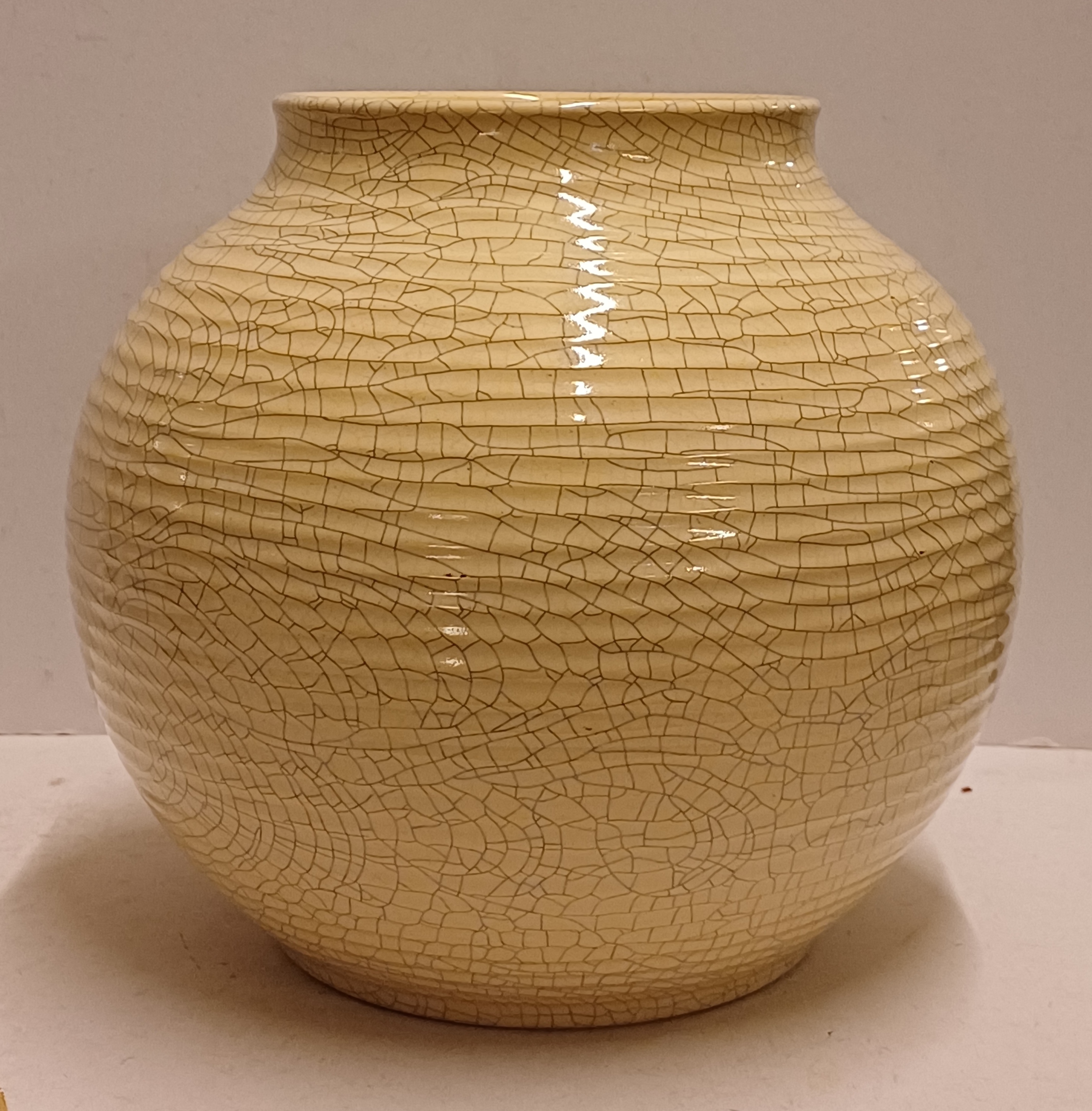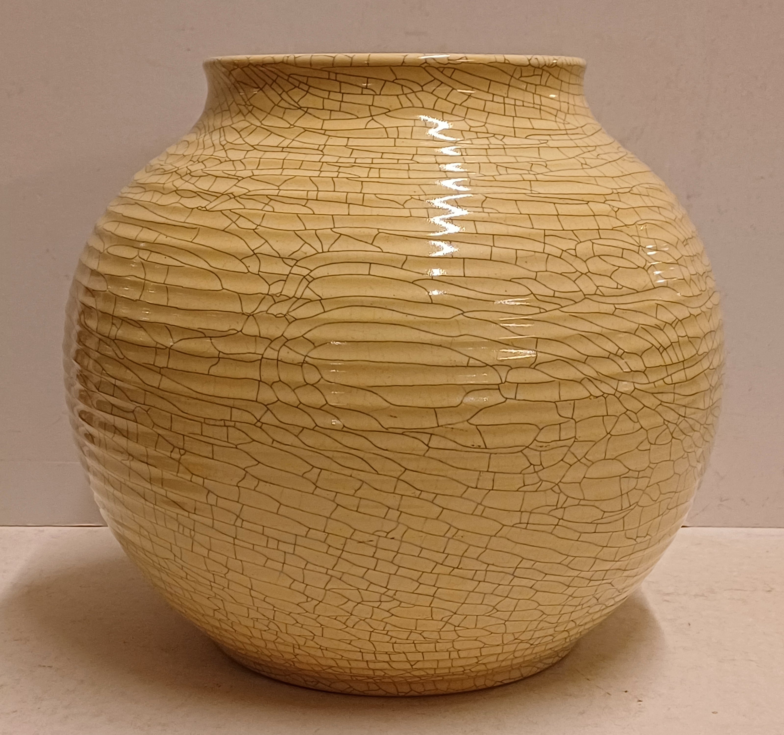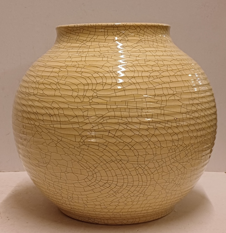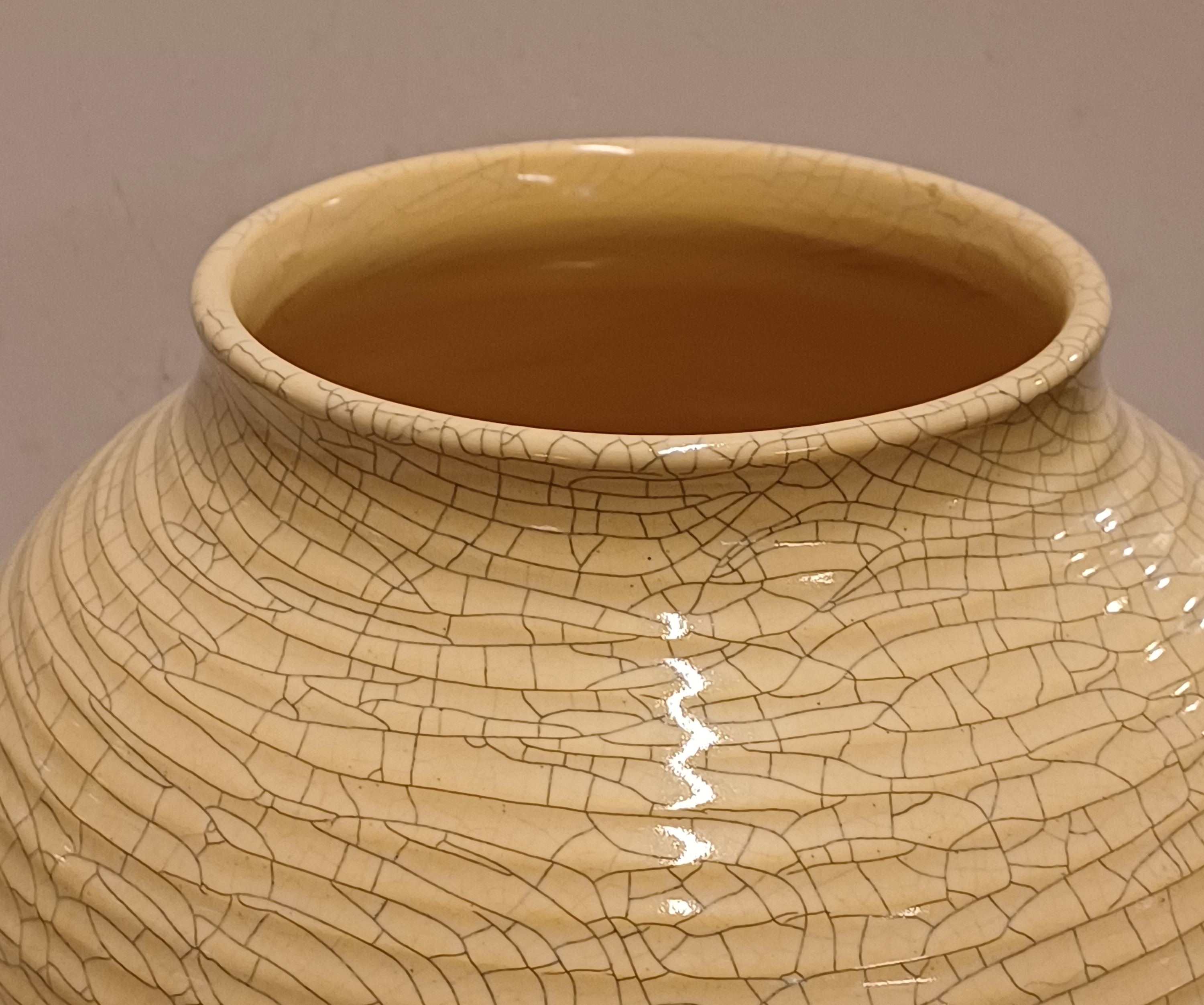 Forse vaas met creme glazuur en zwarte craquele. Onderzijde gemerkt.
