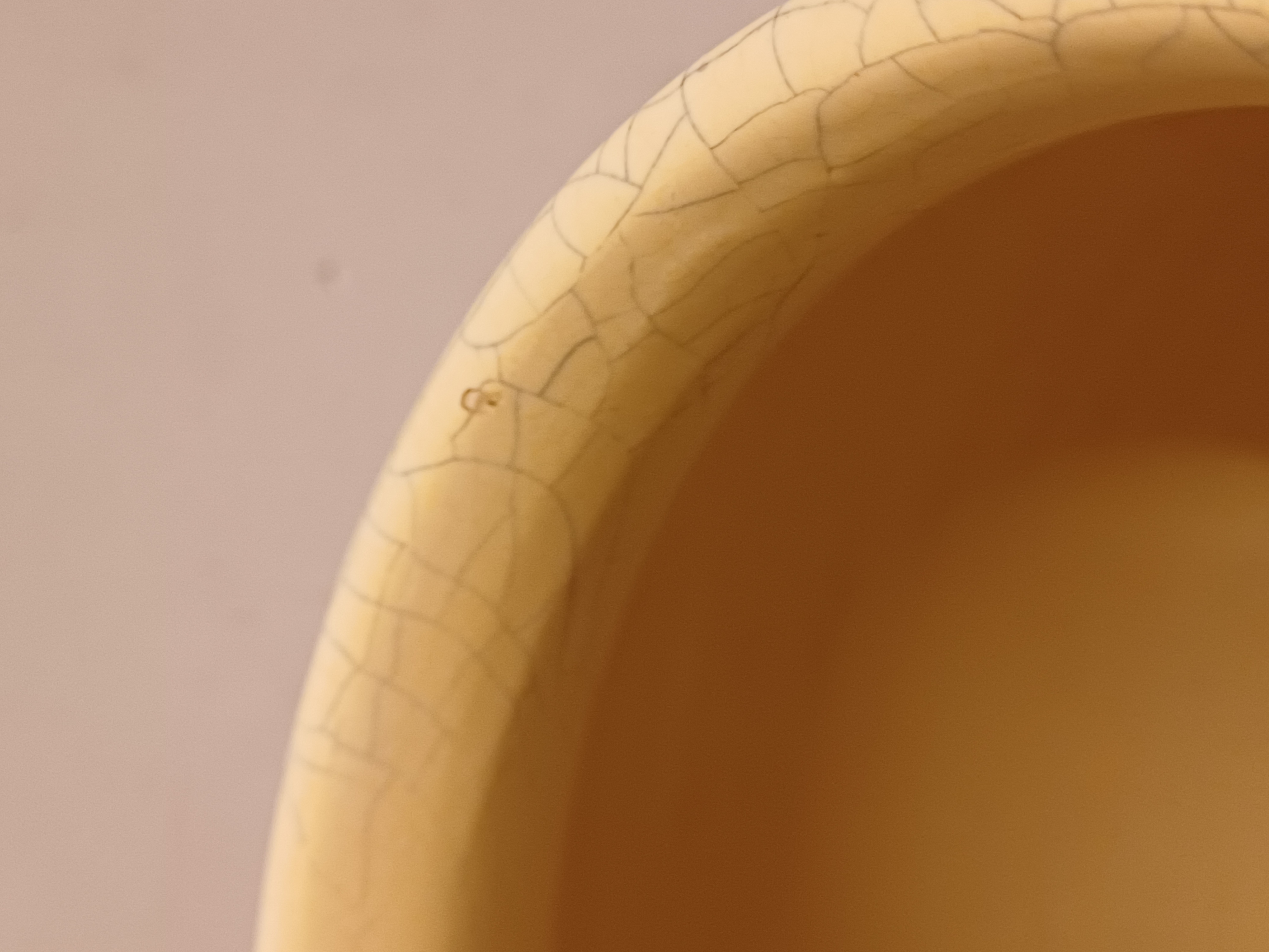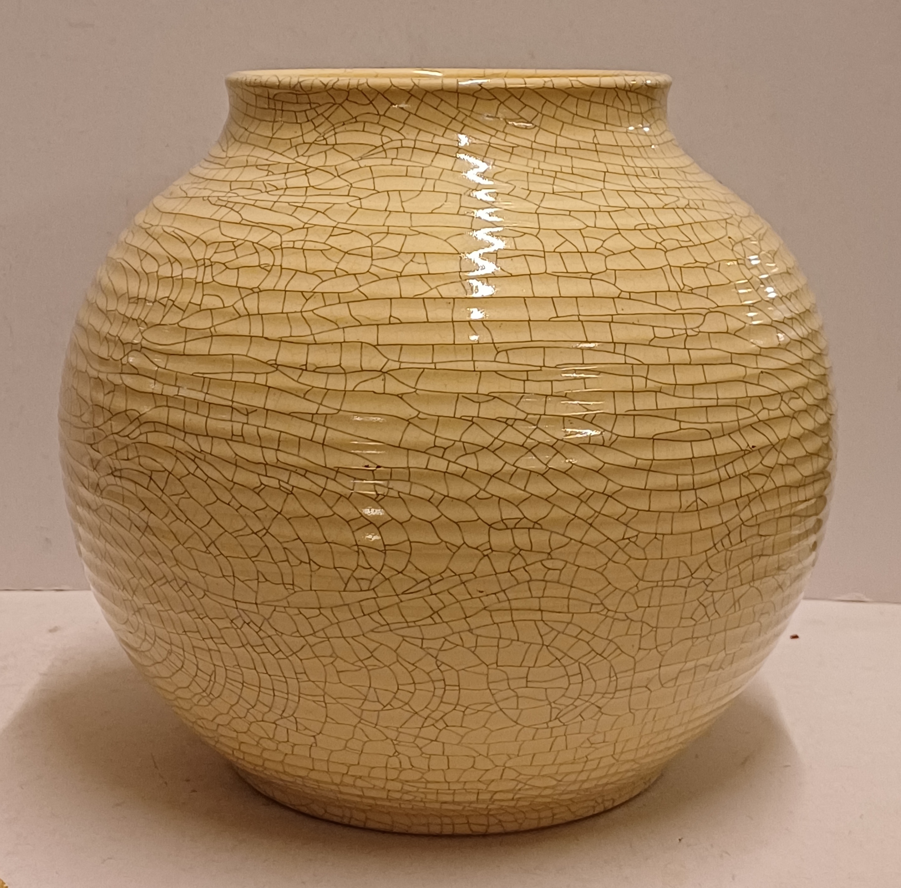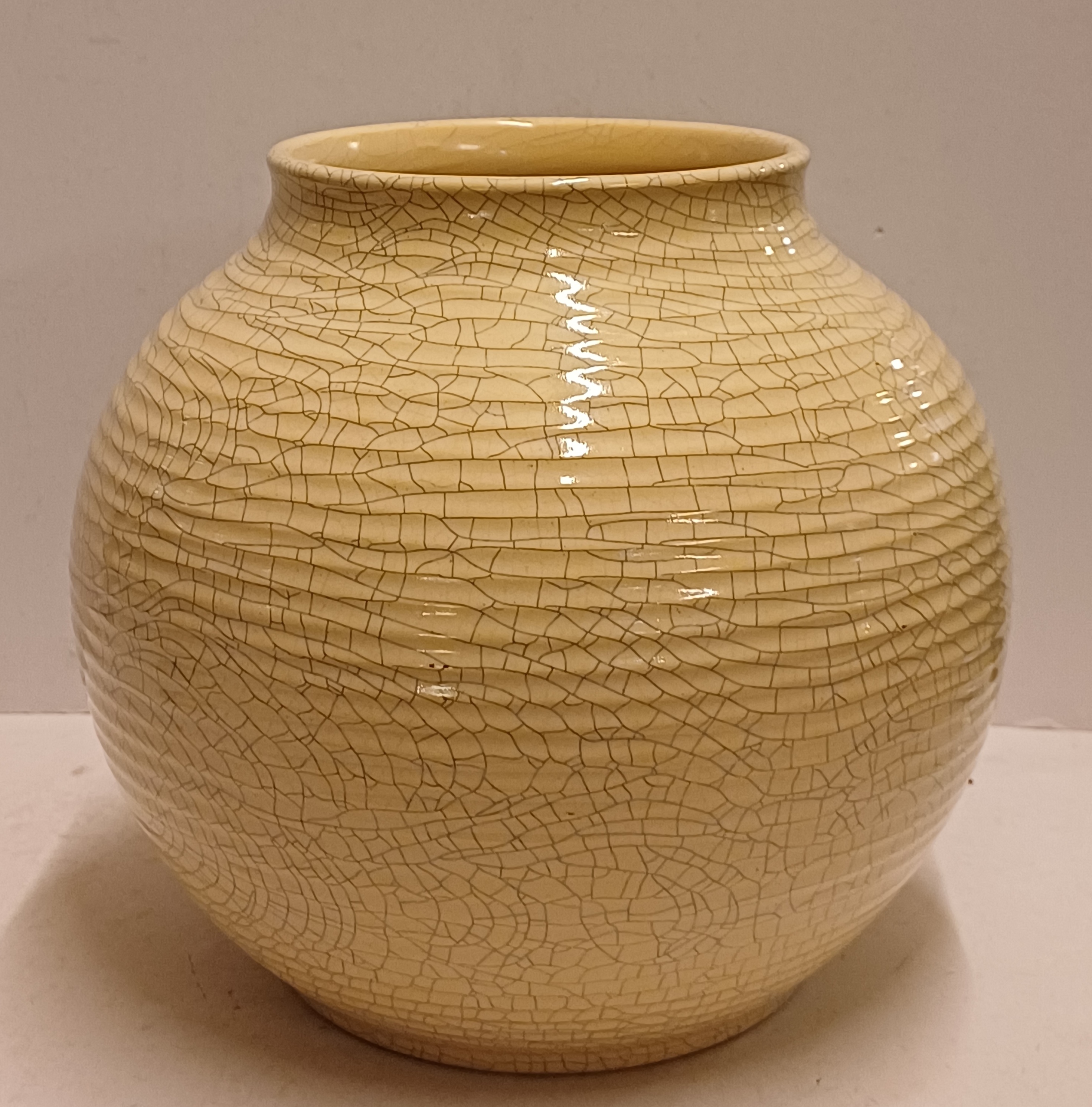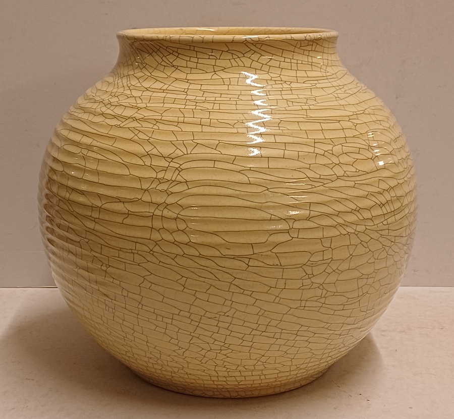 Forse vaas met creme glazuur en zwarte craquele. Onderzijde gemerkt.