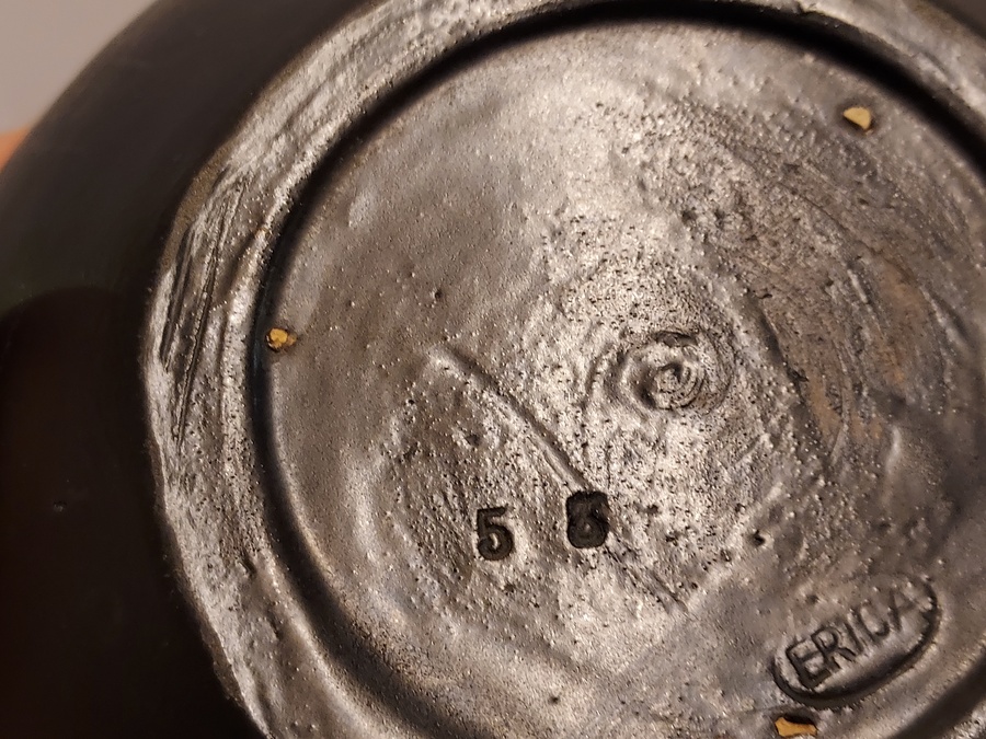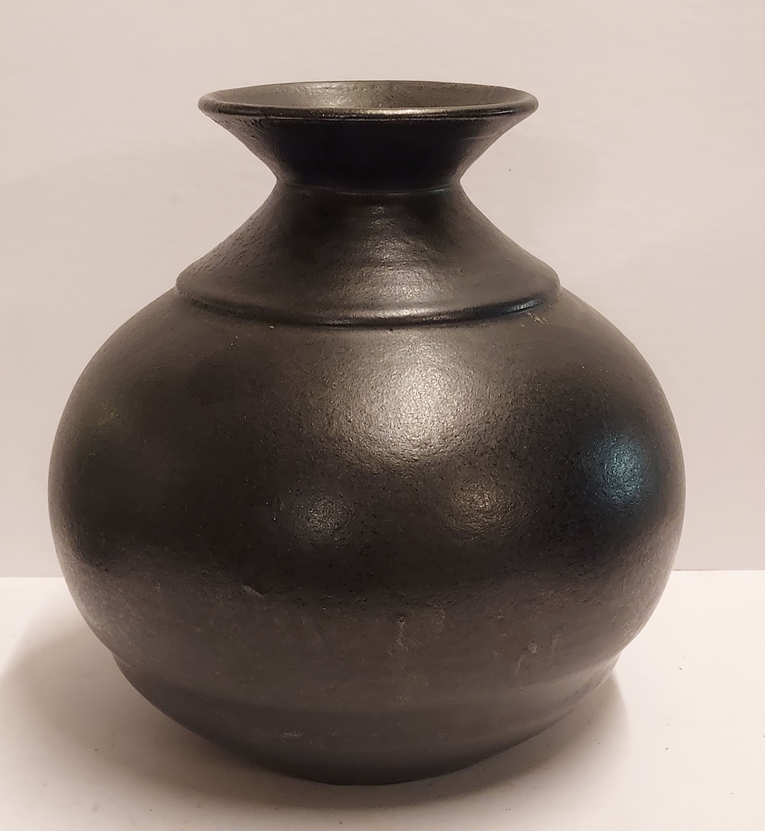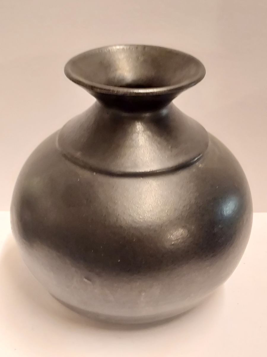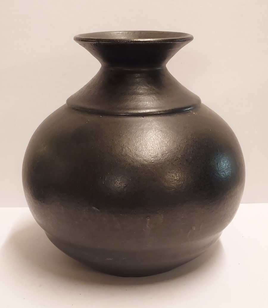 Aardewerken vaas met mat zwarte glazuur. Onderzijde met fabrieksstempel en modelnunmmer 55.