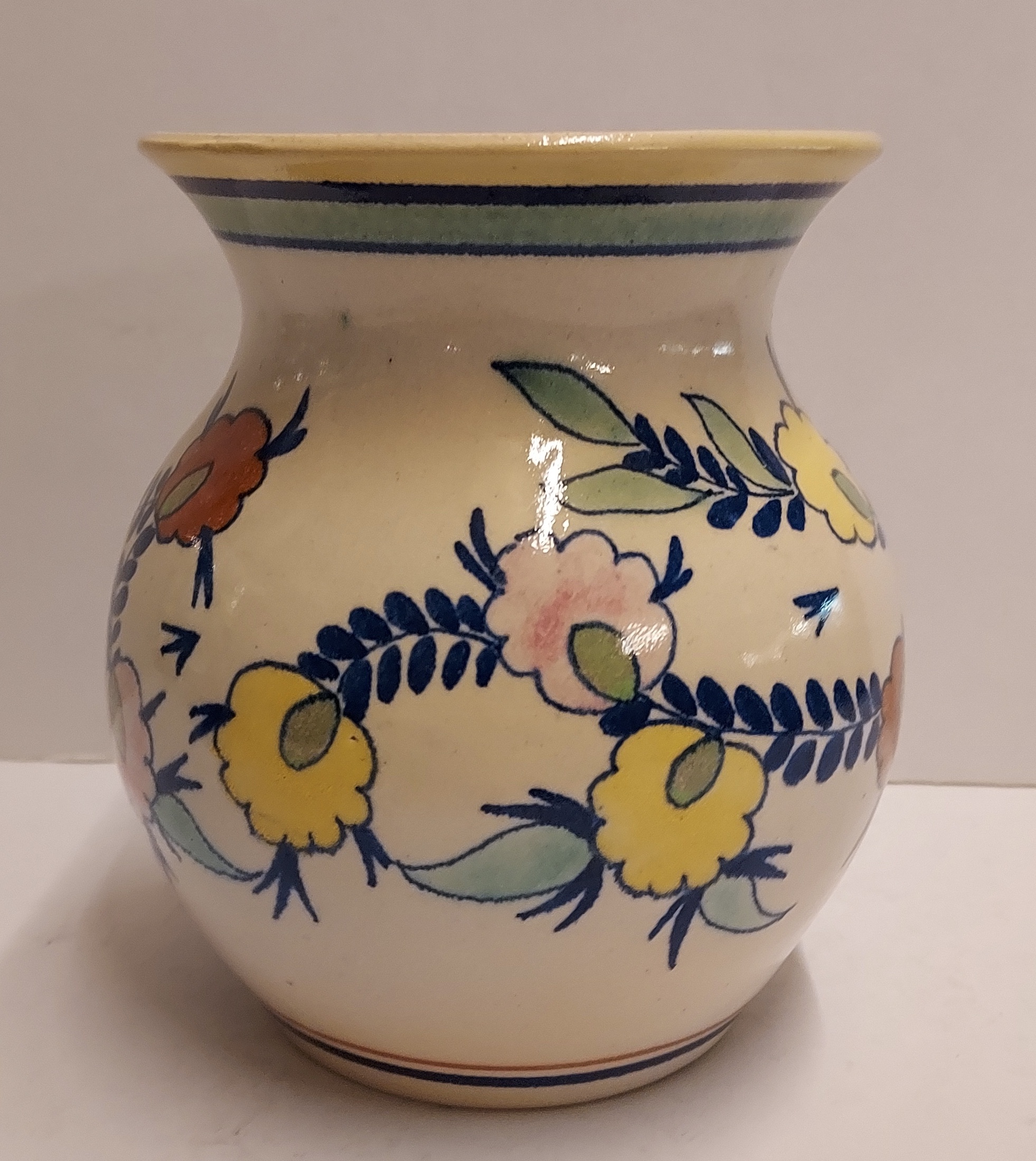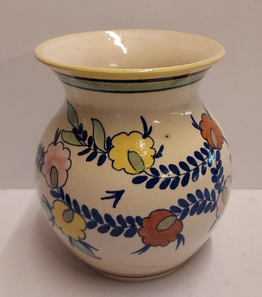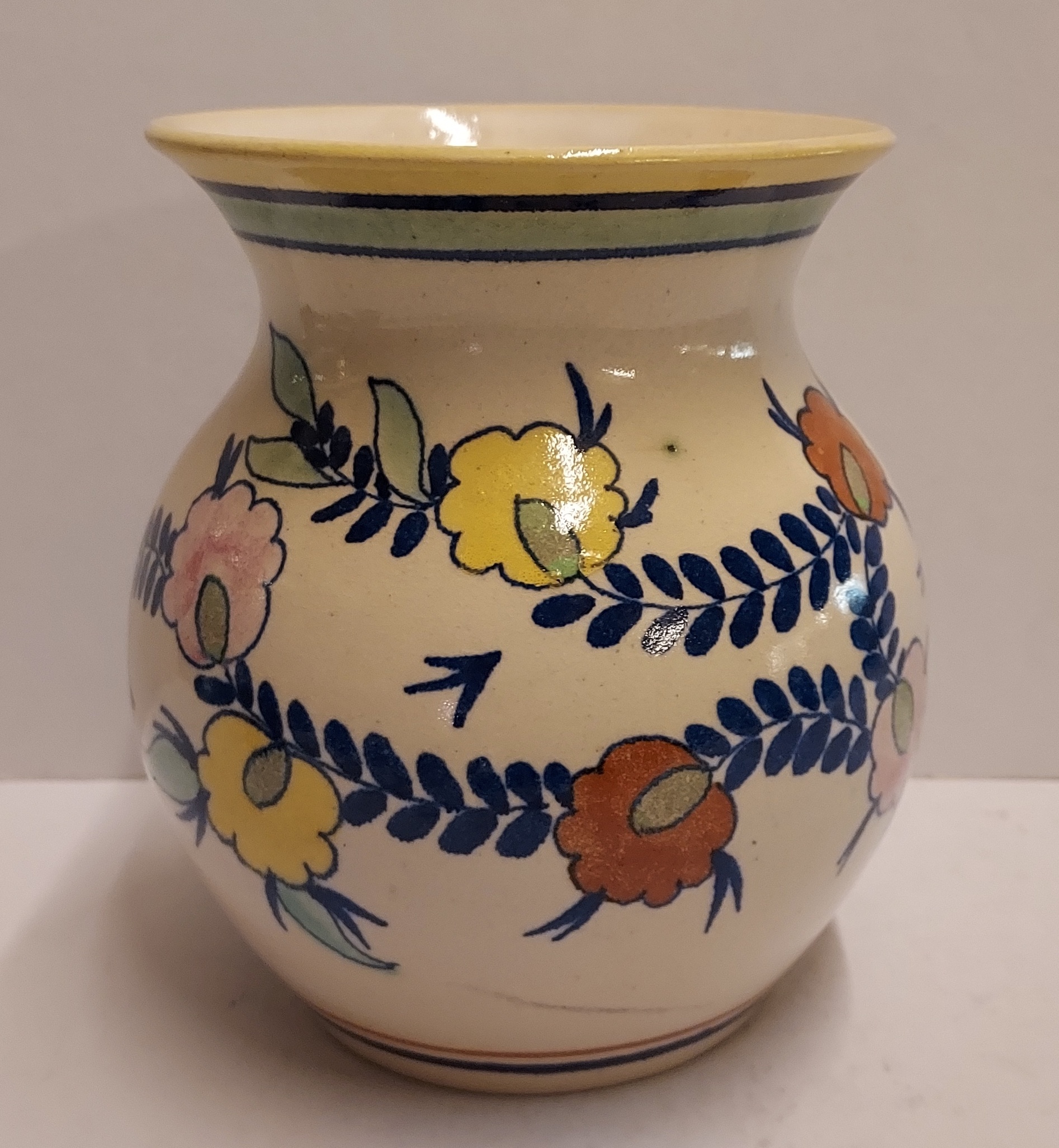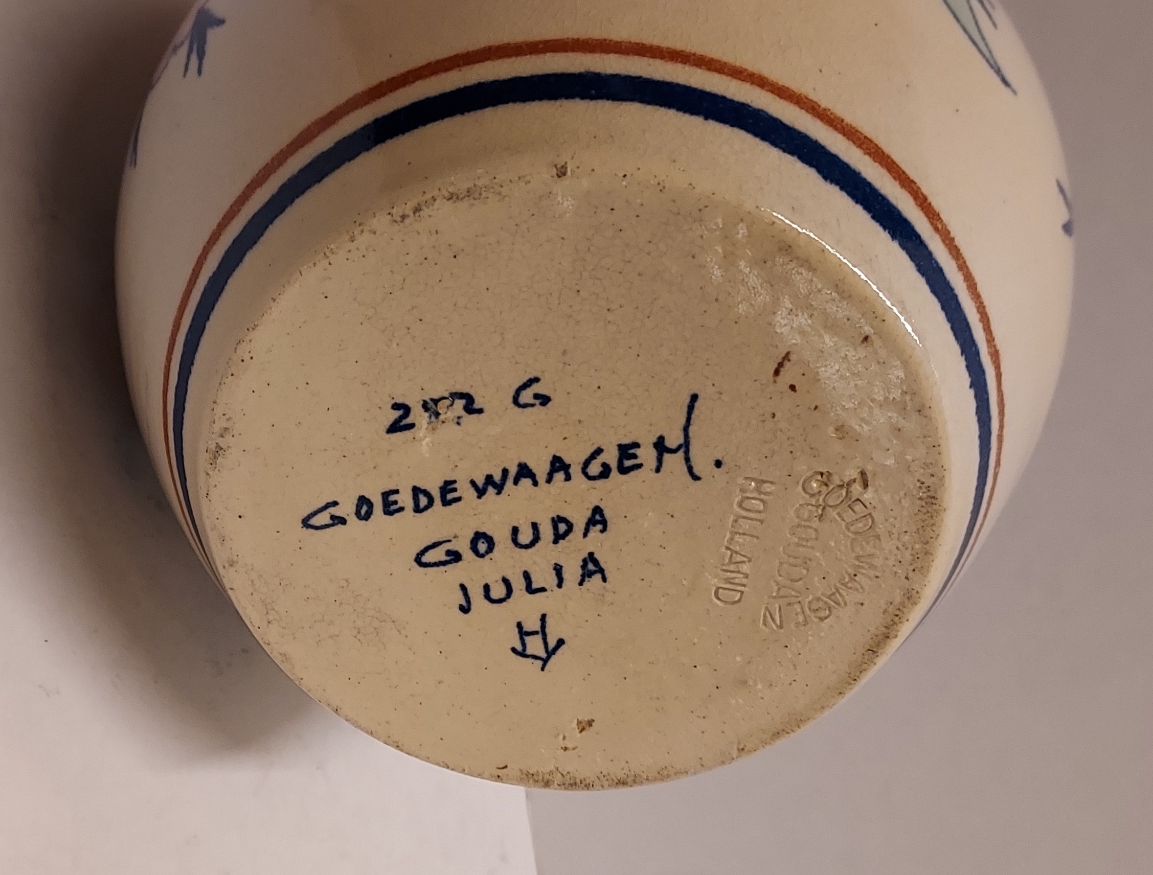 Polychroom floraal decor Julia. Onderzijde met fabrieksmerk.