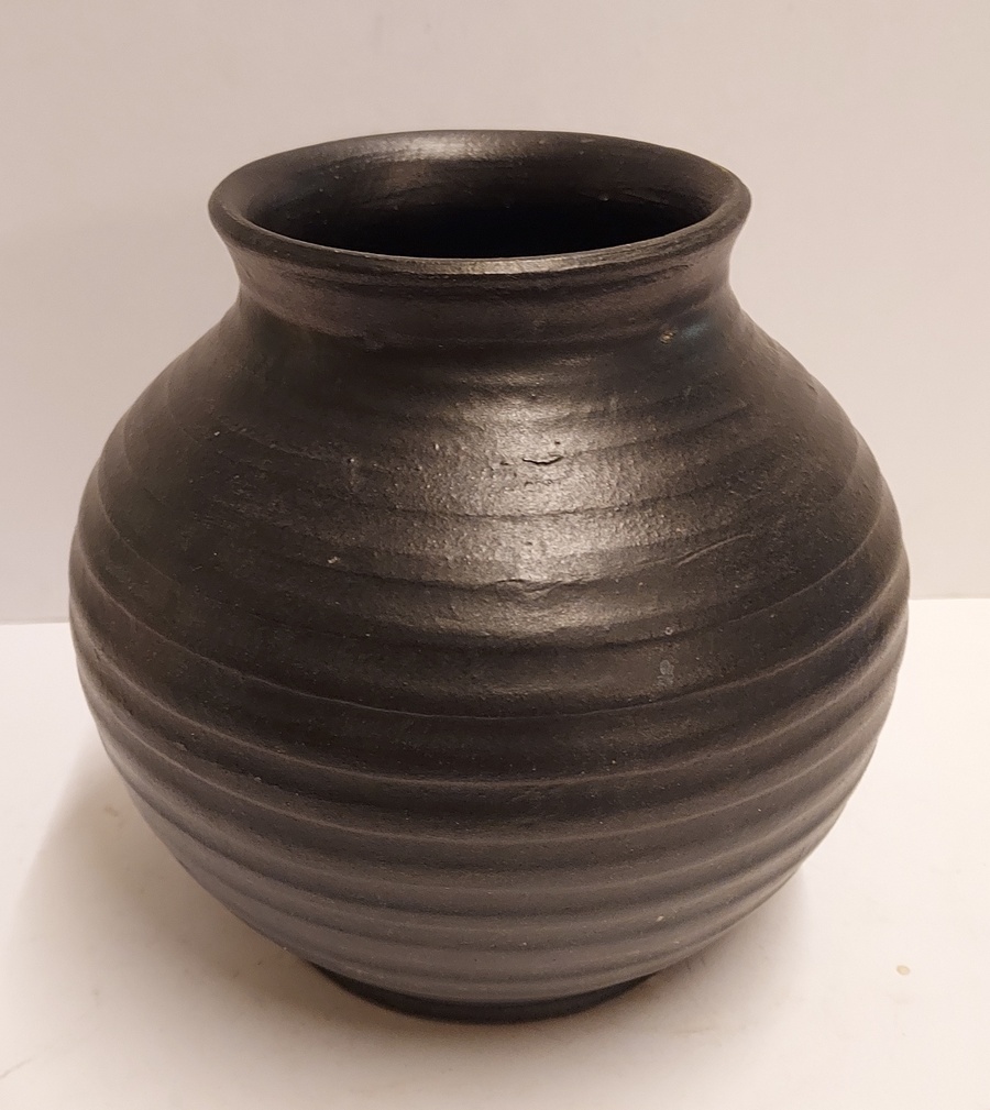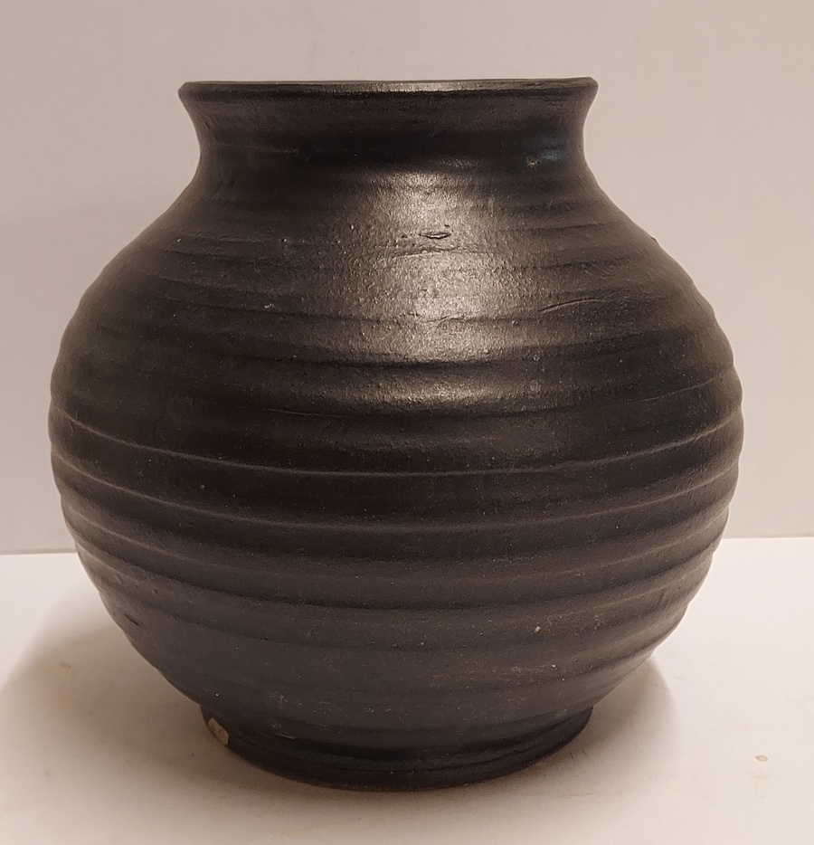 Mat zwart geglazuurde vaas. Modelnummer 1012. Onderzijde gesigneerd met fabrieksmerk.