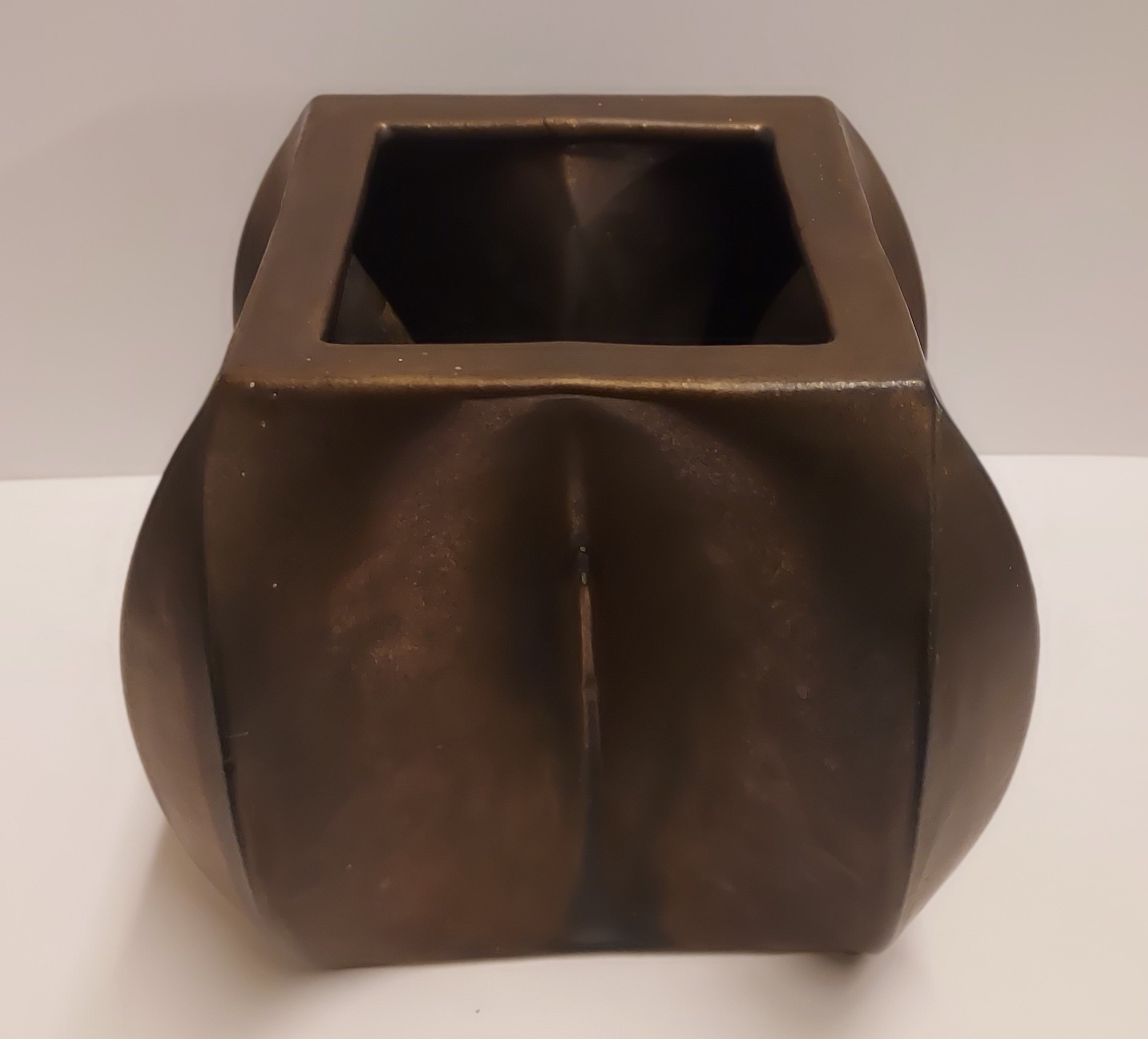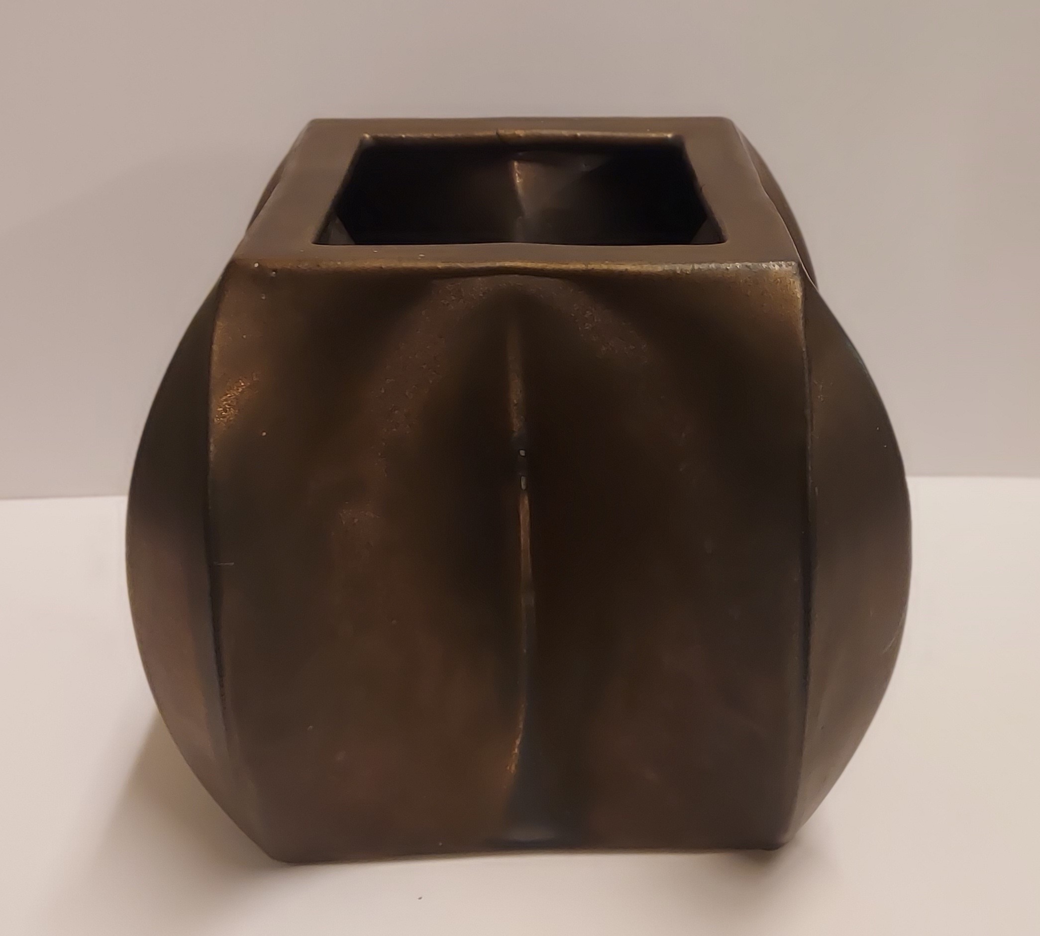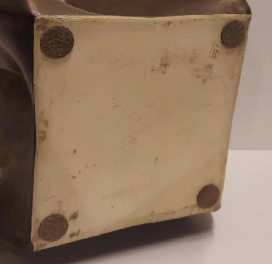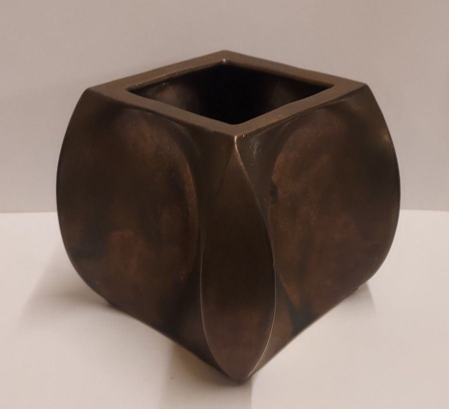 Steengoed multiple vaas met bronsglazuur. Uitvoering eigen atelier. Onderzijde gesigneerd en gedateerd 76.