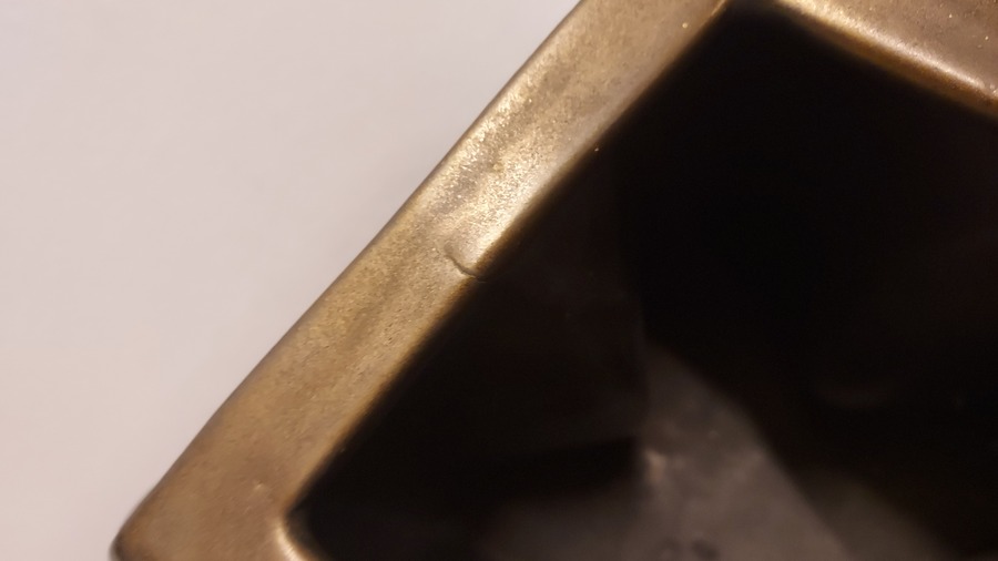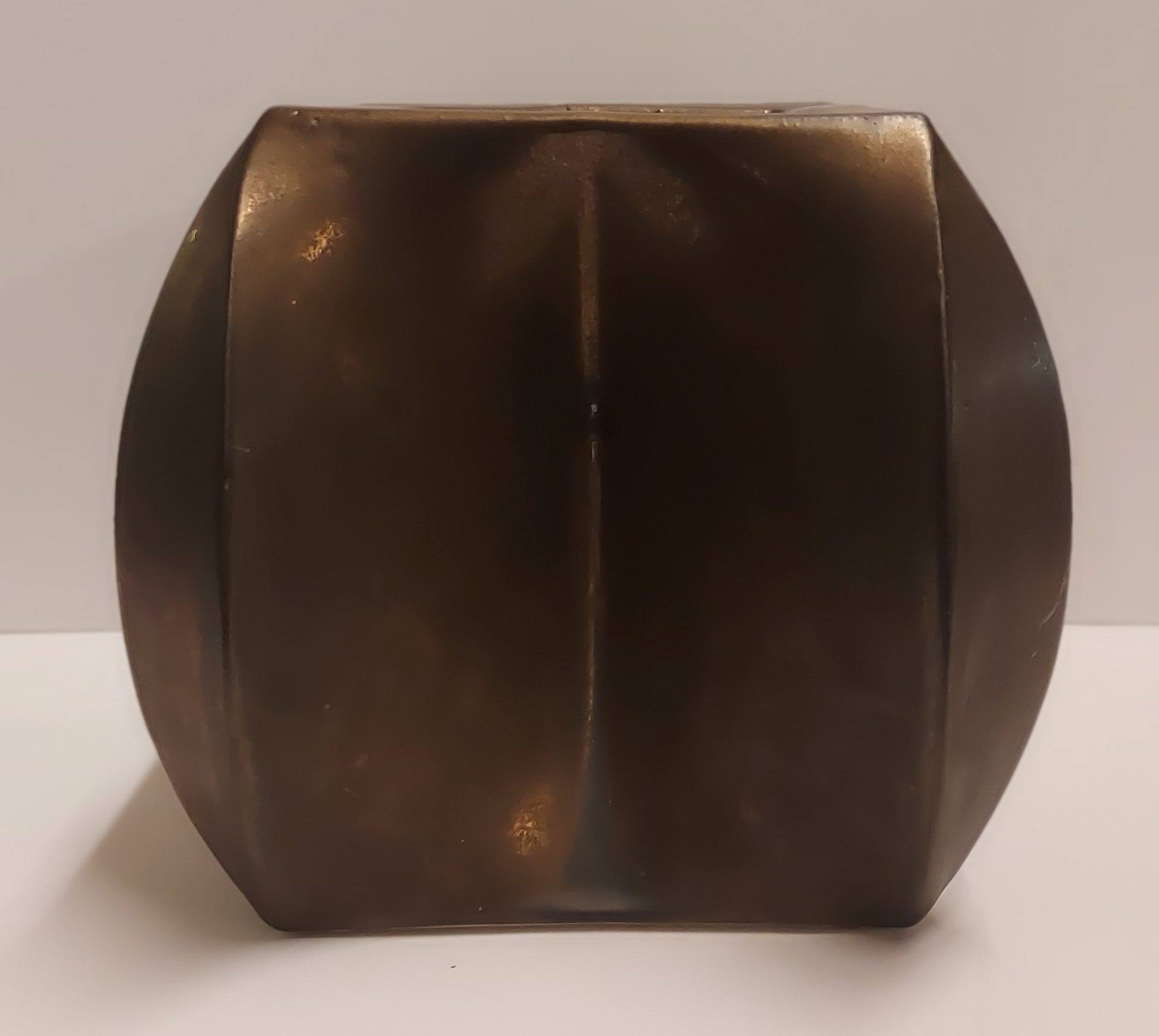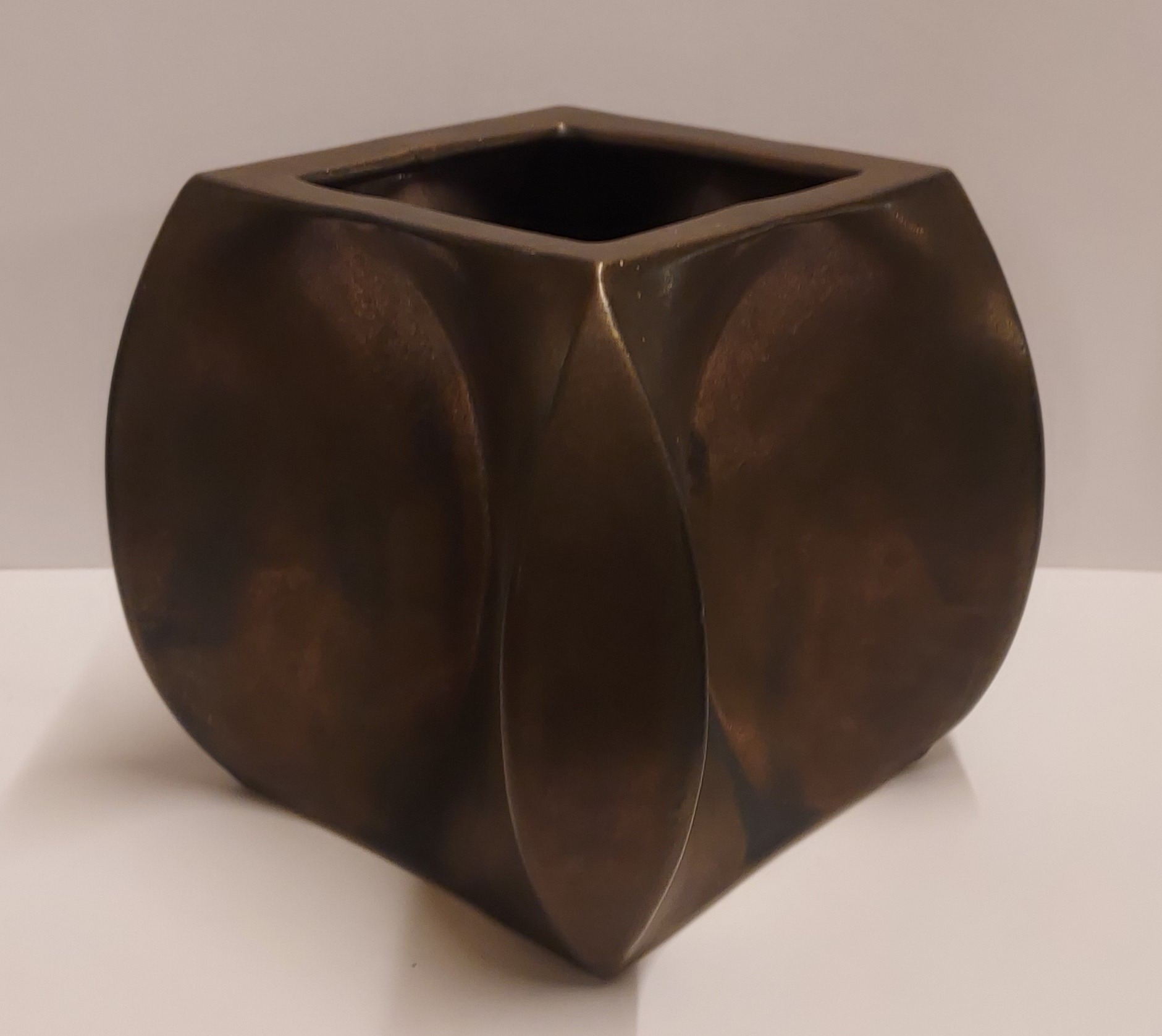 Steengoed multiple vaas met bronsglazuur. Uitvoering eigen atelier. Onderzijde gesigneerd en gedateerd 76.