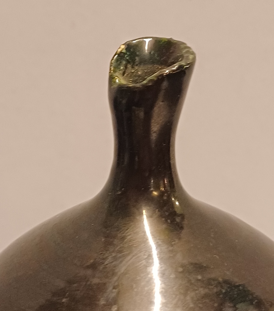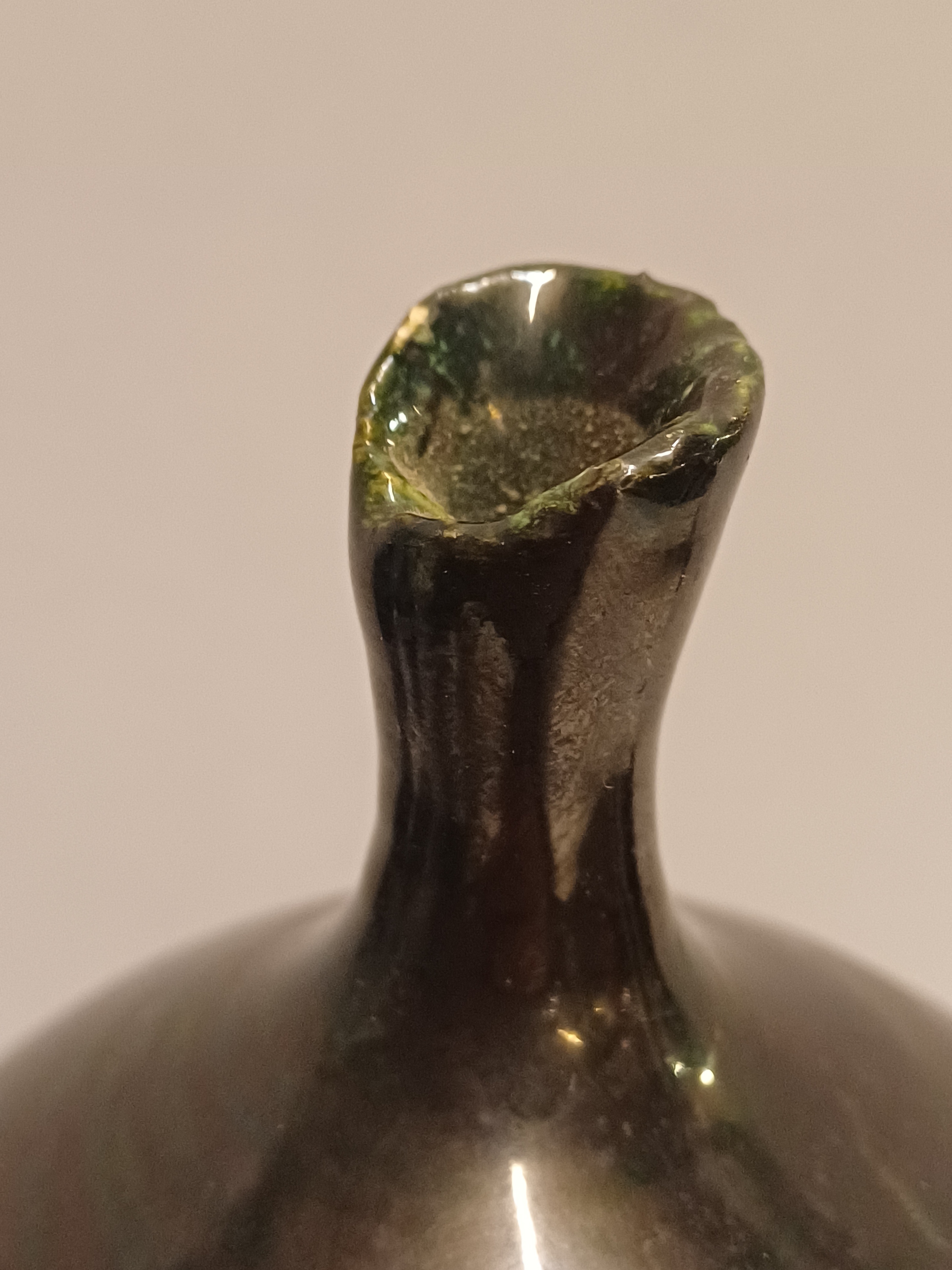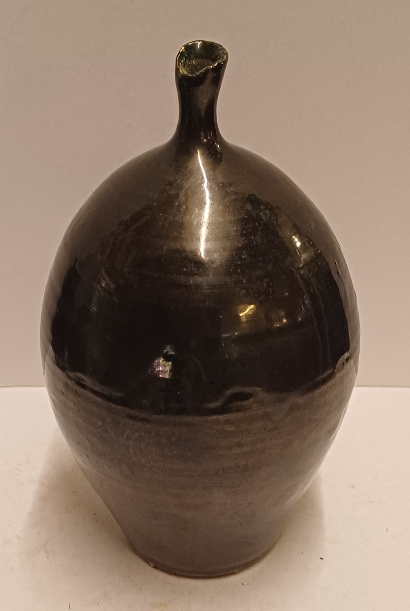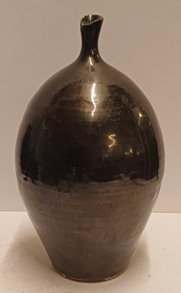 Aardewerken vaas met zwarte glazuur. Onderzijde gesigneerd.