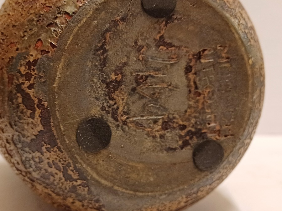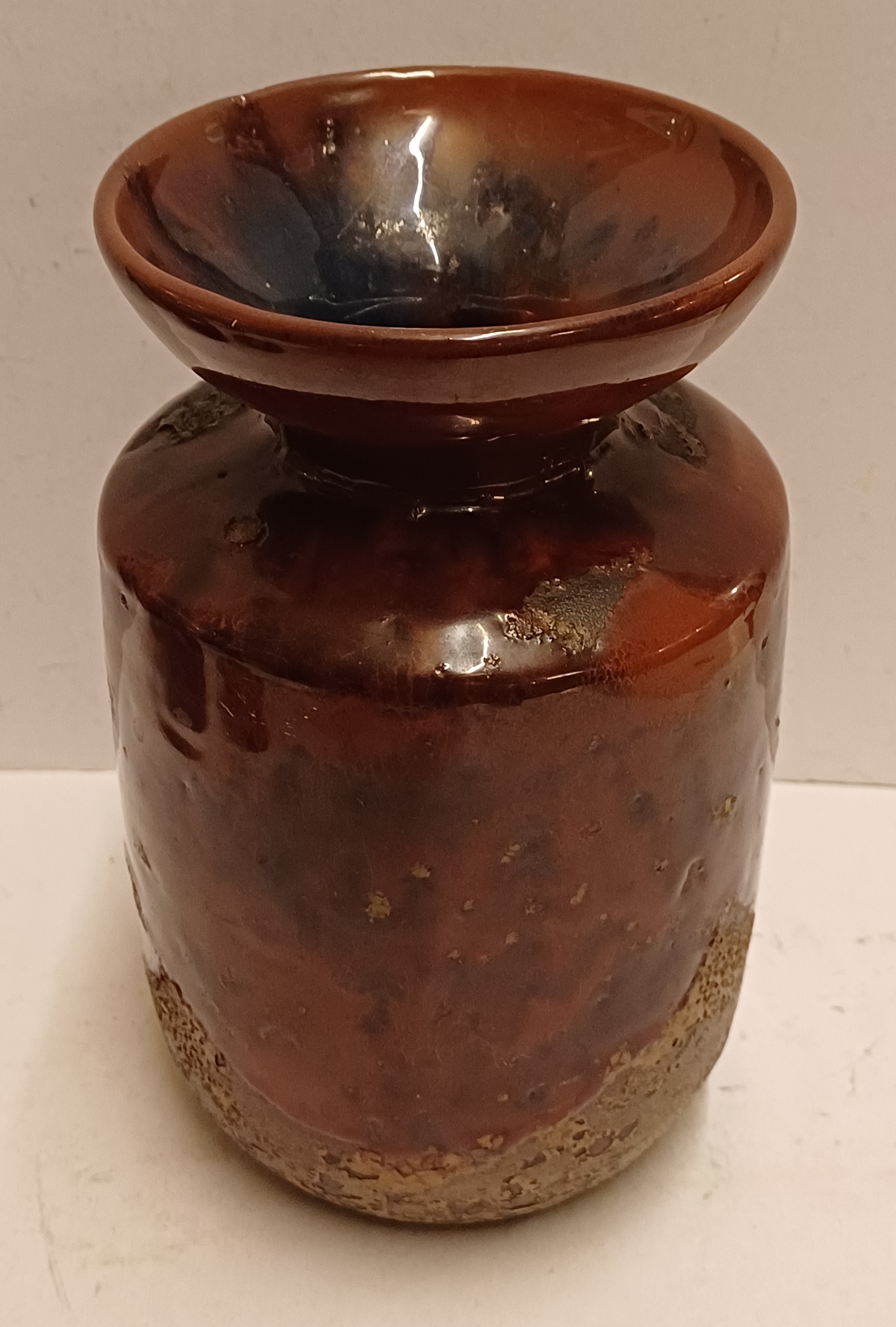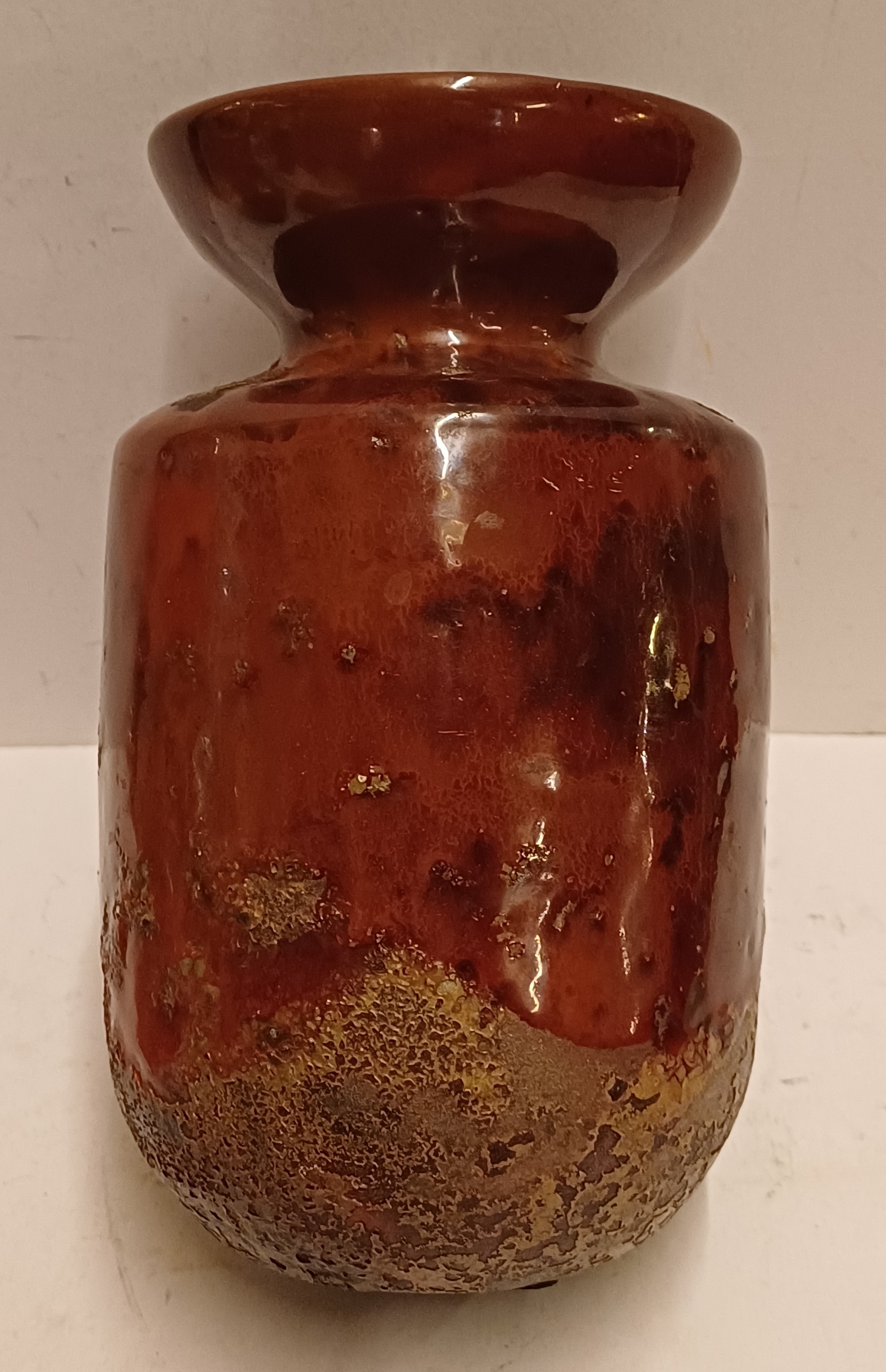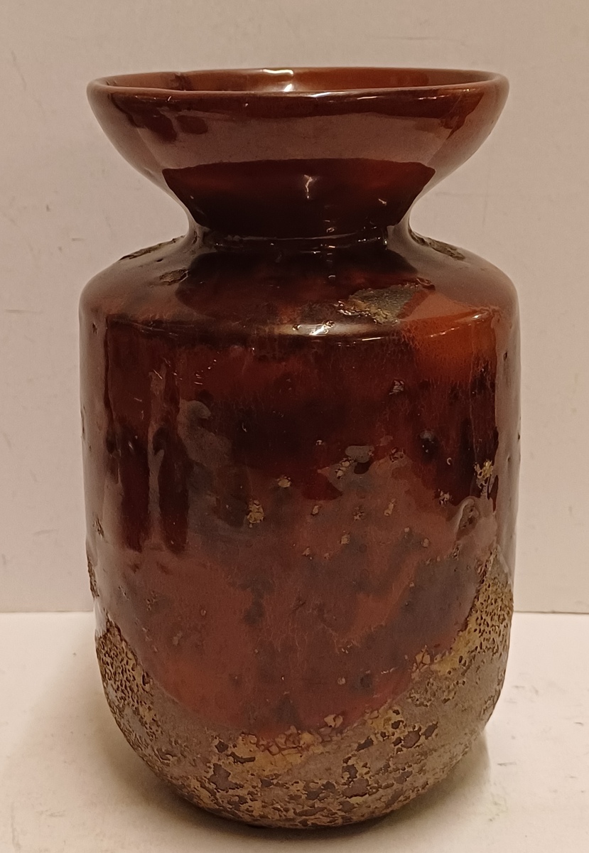 Aardewerken vaas met rode deels gebruiste glazuur. Onderzijde gemerkt.