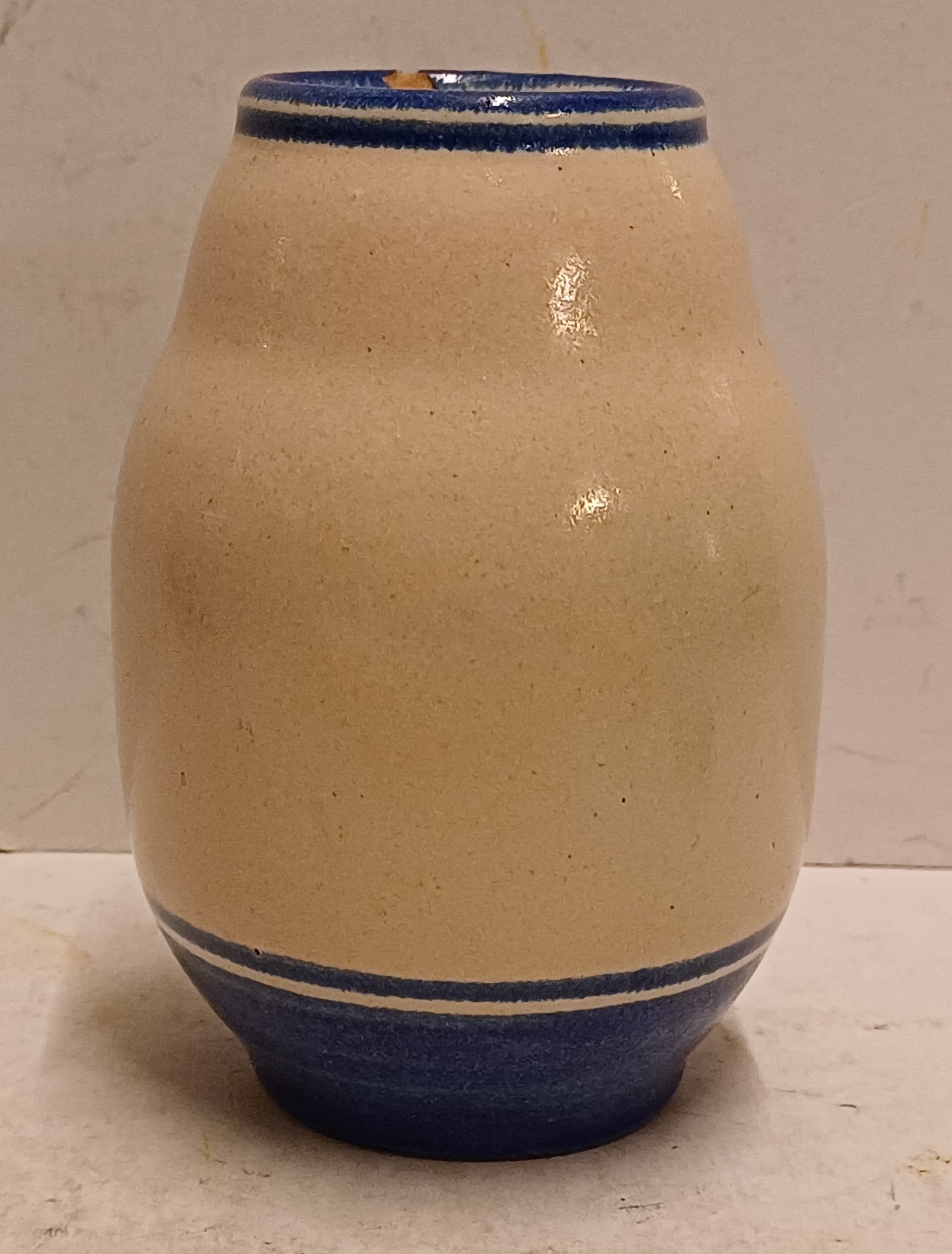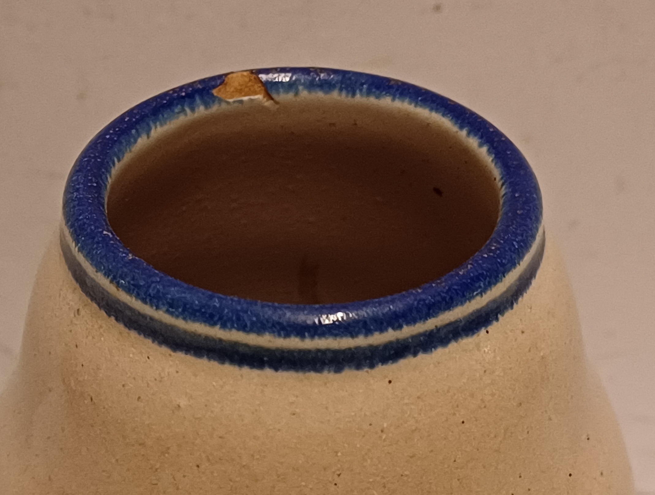 Aantal plekjes langs de stand en chip aan de mondrand.