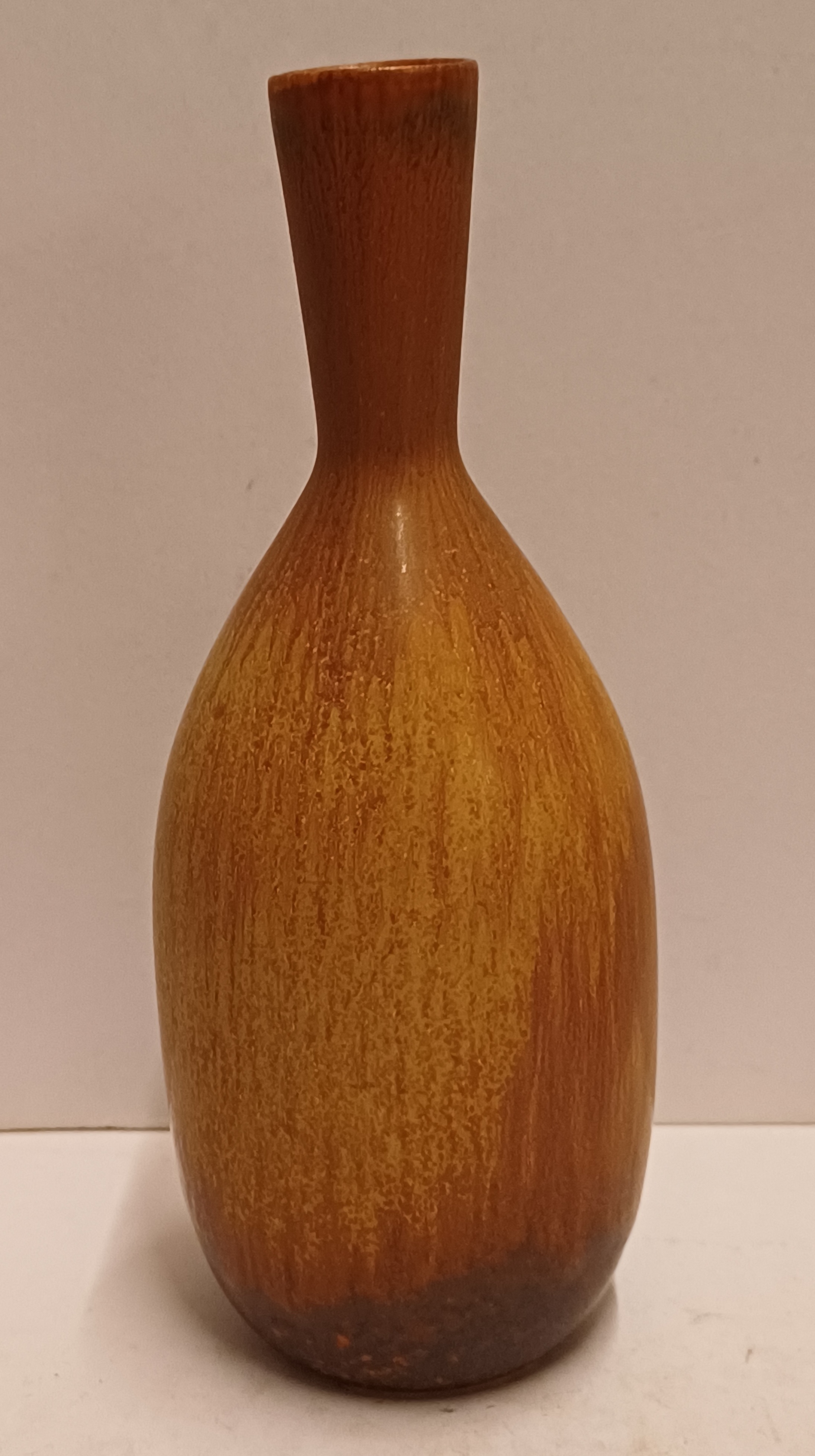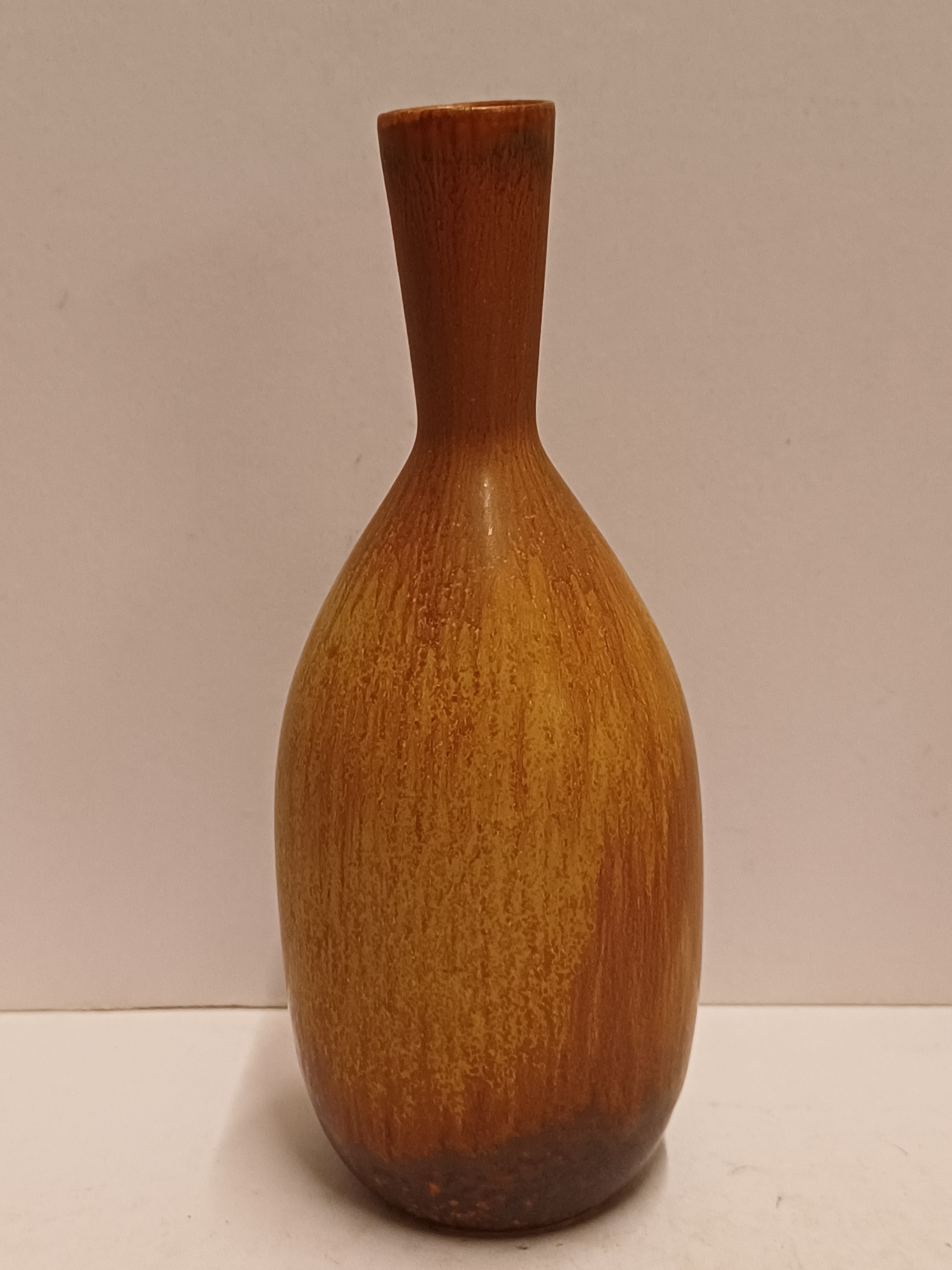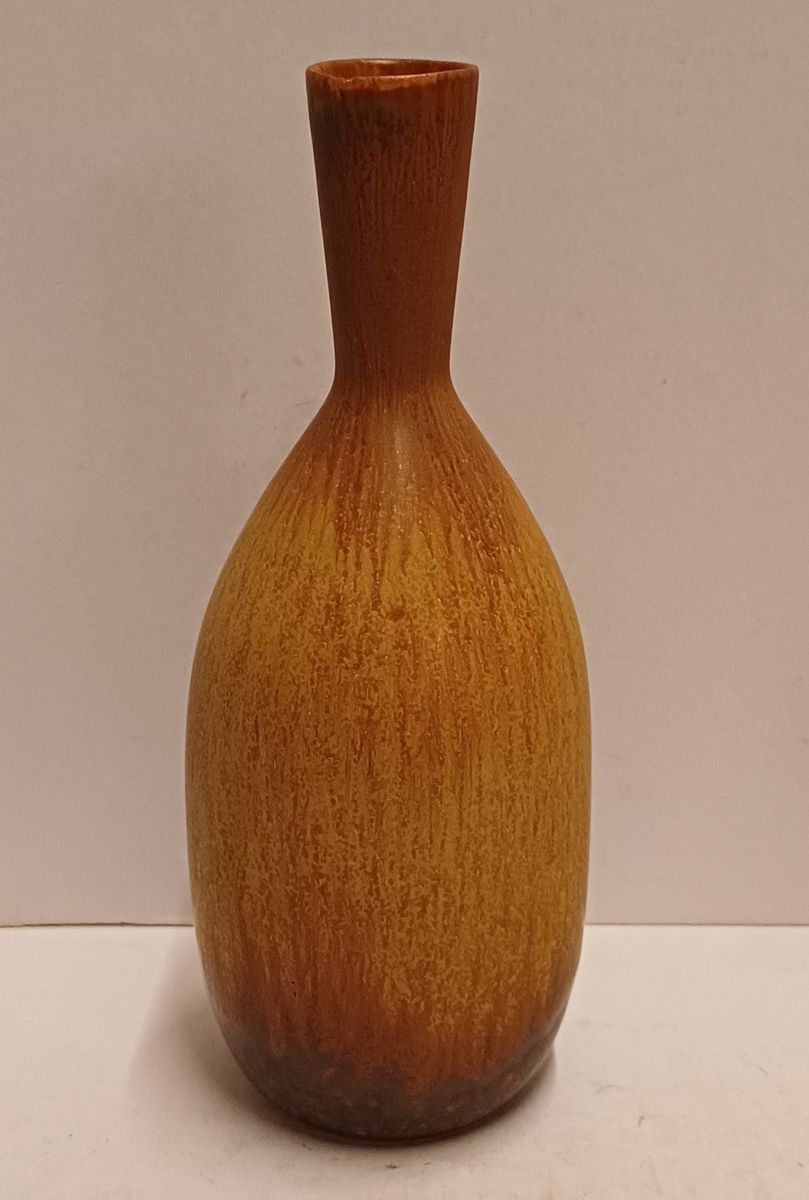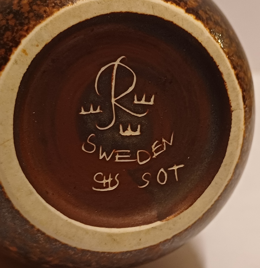 Aardewerken vaasje met bruine glazuur. Ontwerp Gunnar Nylund voor Rorstrand Sweden.