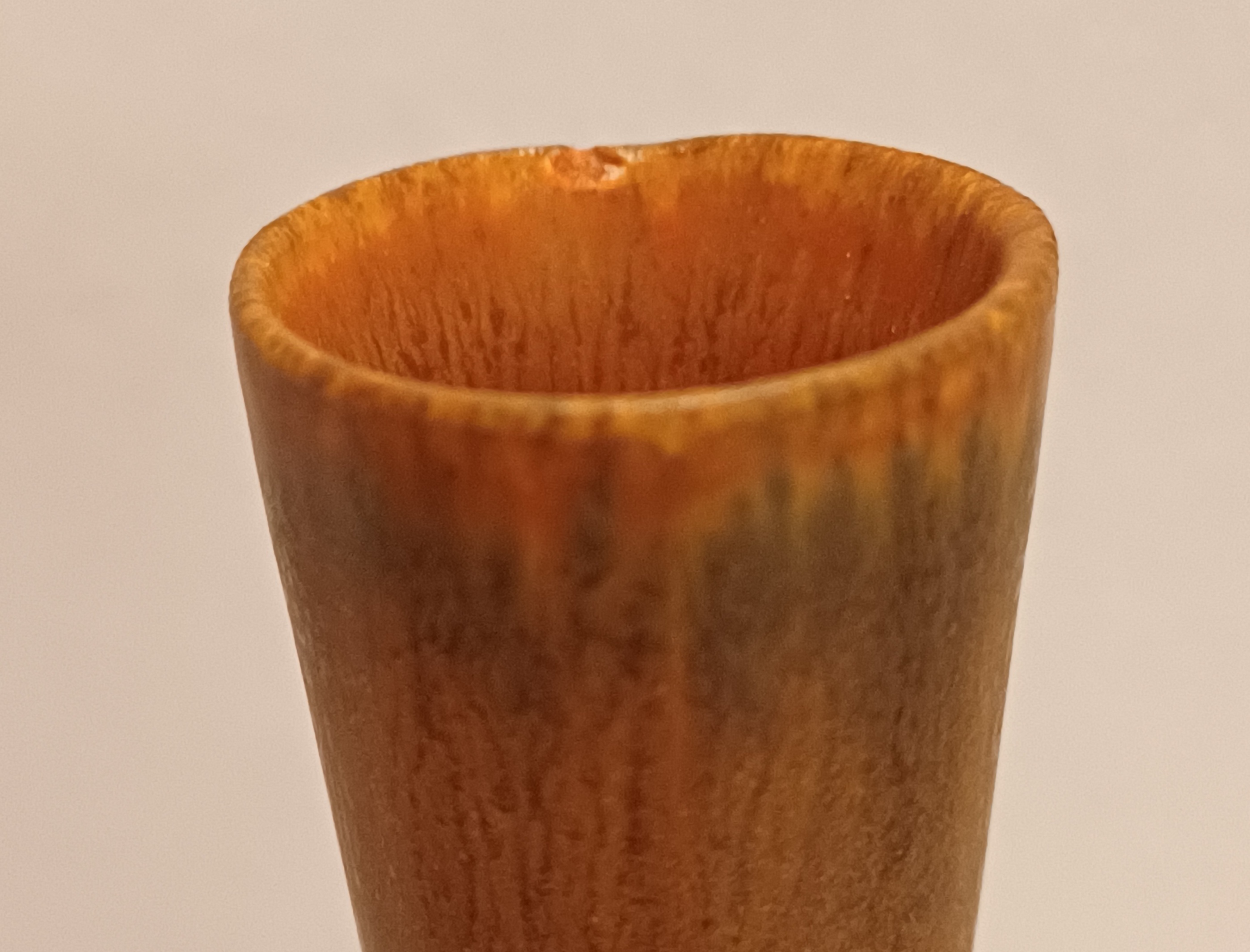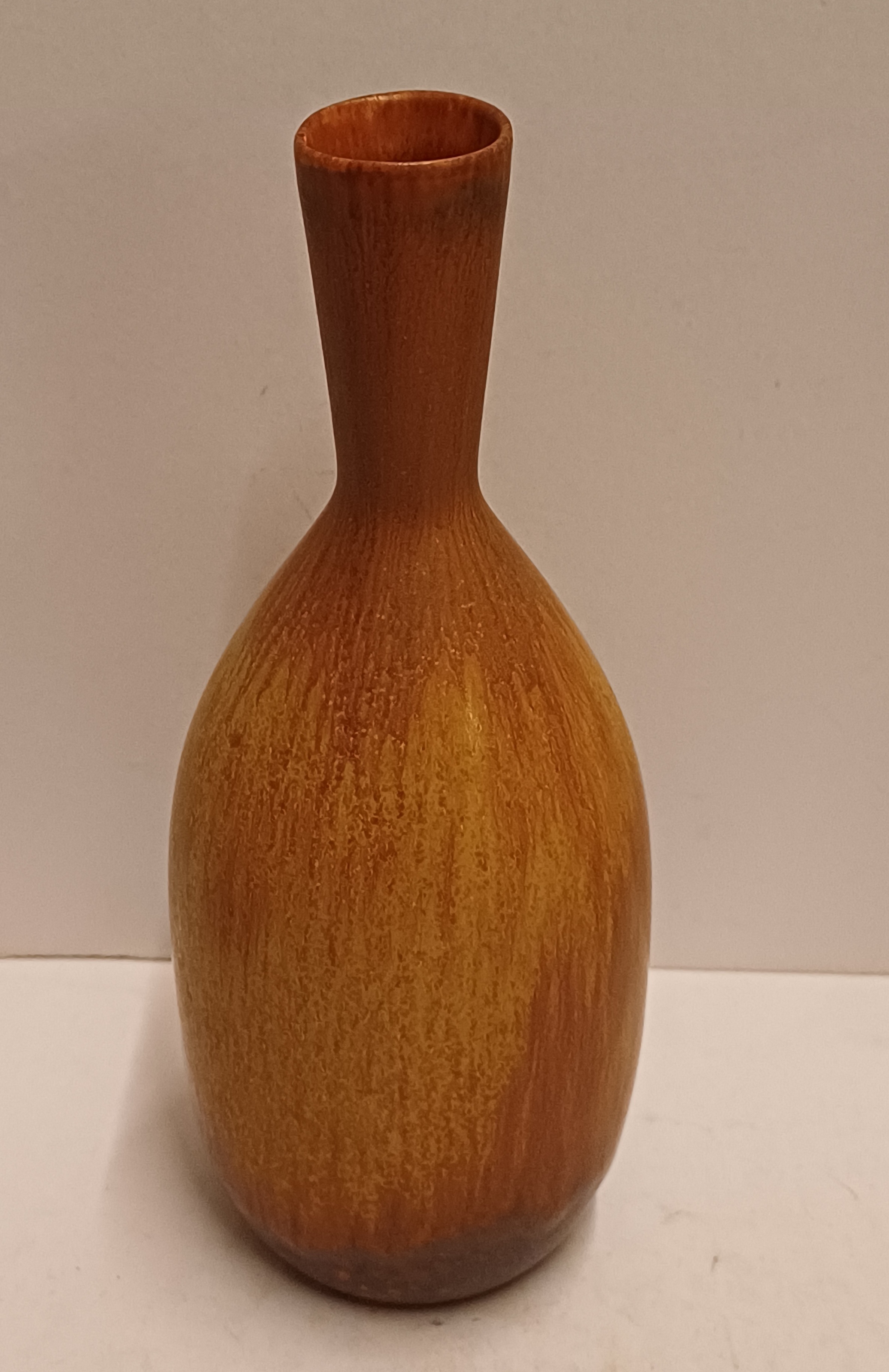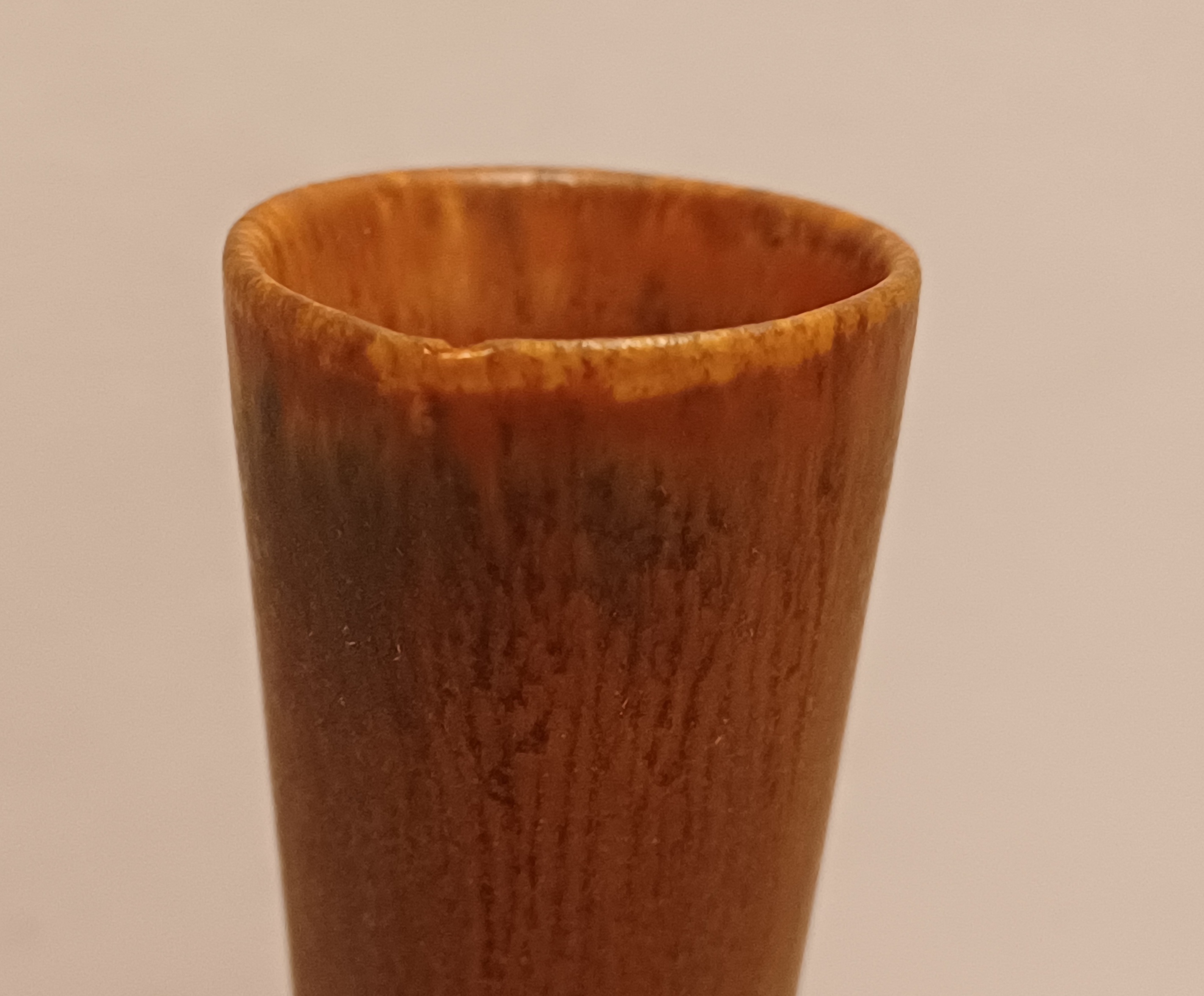 Aardewerken vaasje met bruine glazuur. Ontwerp Gunnar Nylund voor Rorstrand Sweden.