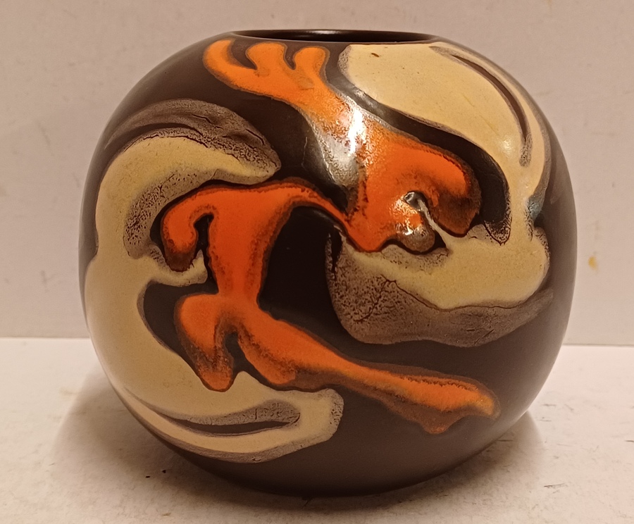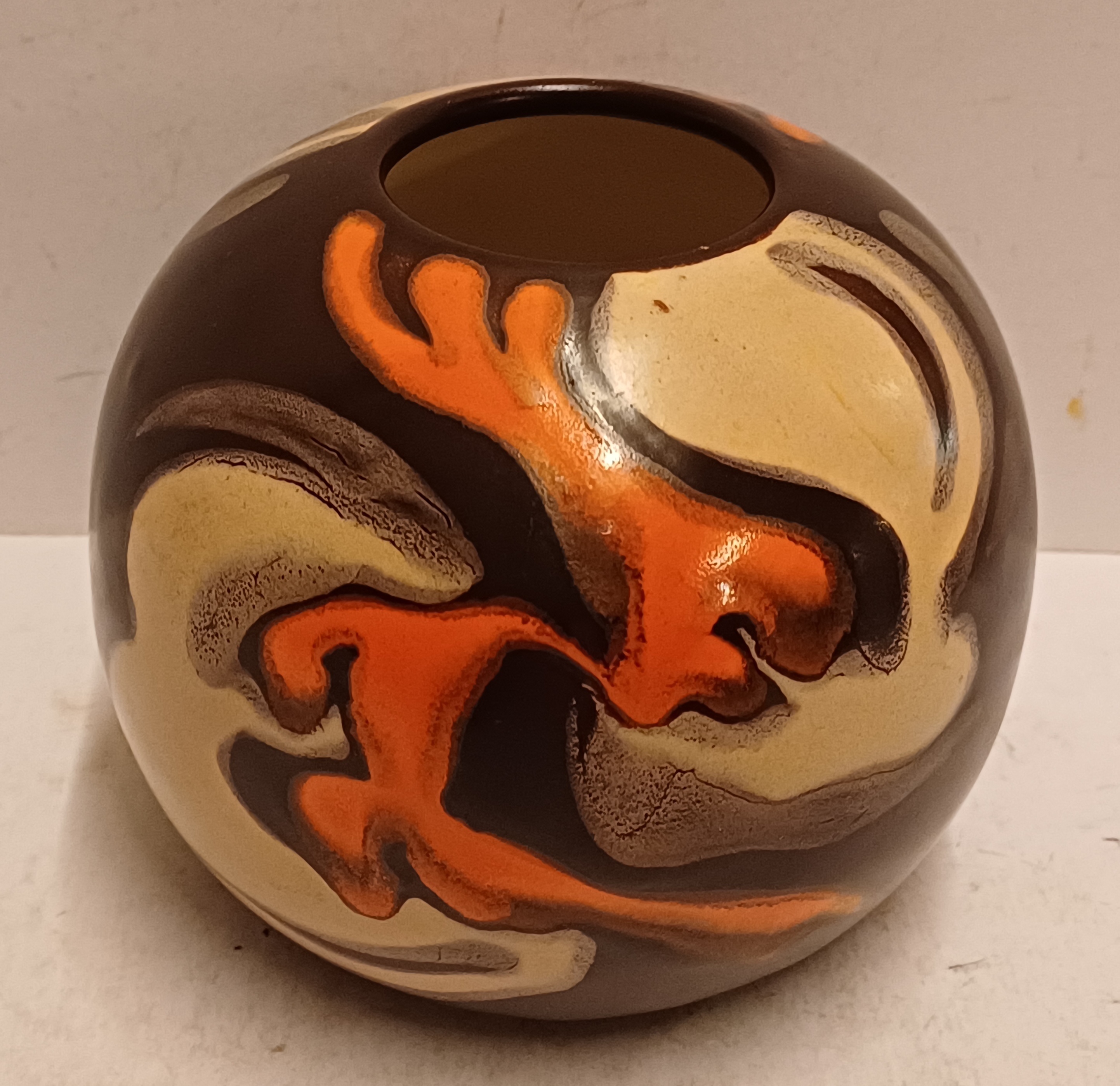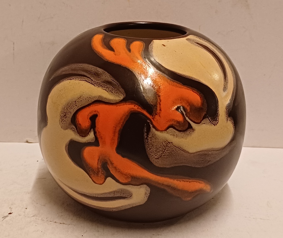 Bolvaasje met decor Sepia. Onderzijde met fabrieksmerk.