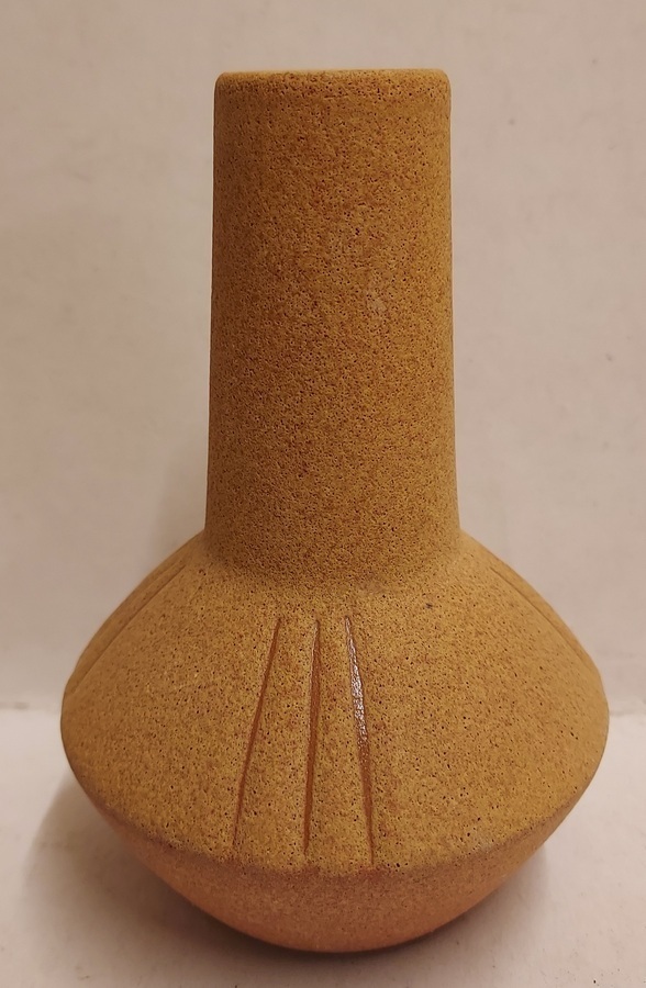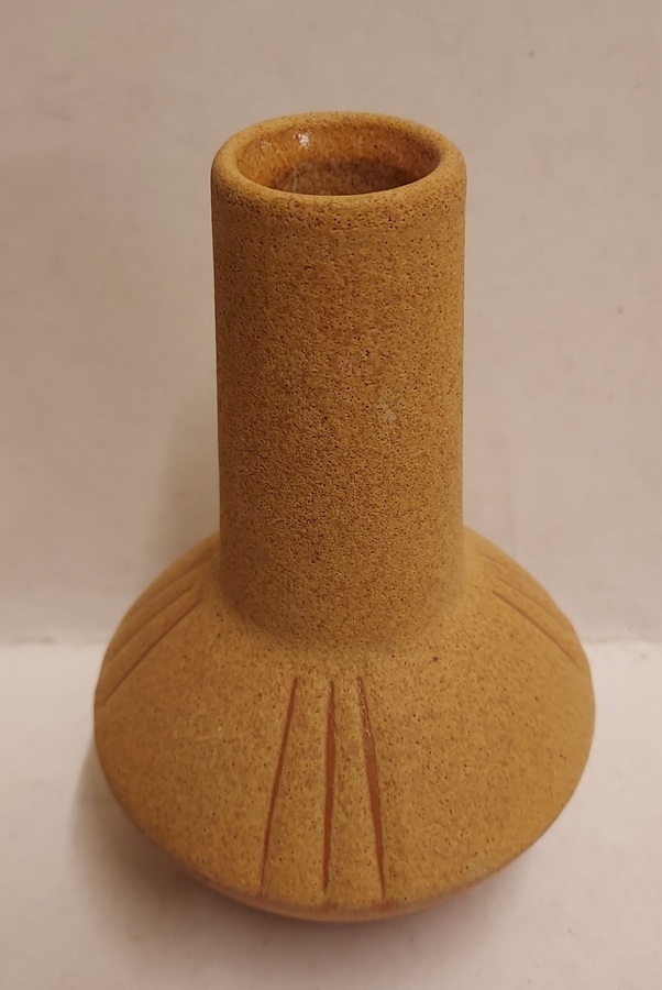 Vaasje met ruwe glazuur en minimaal lijnenspel