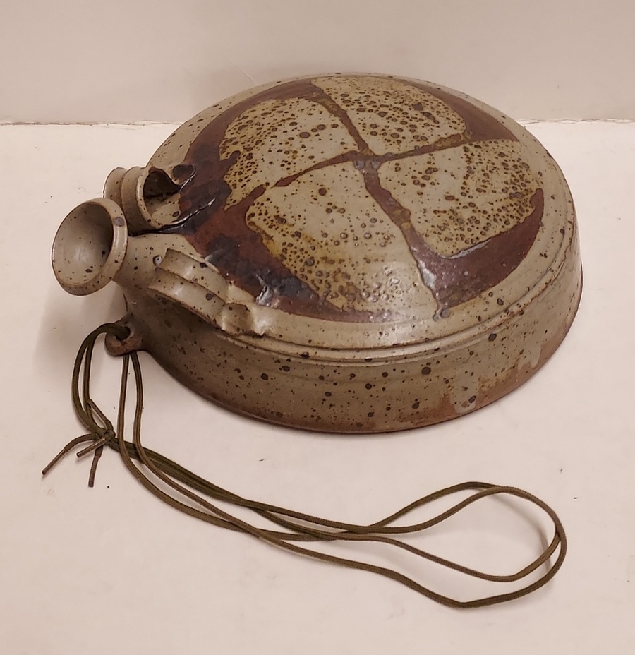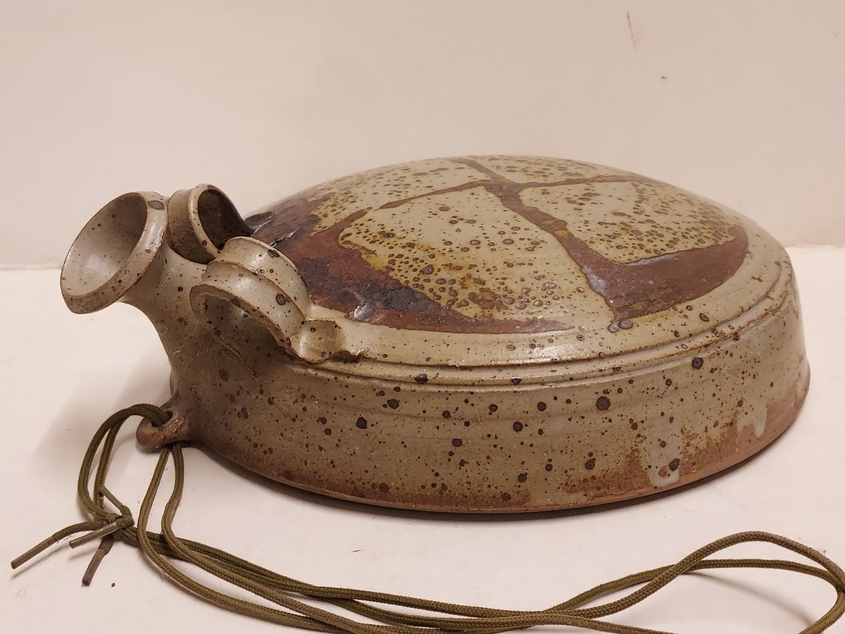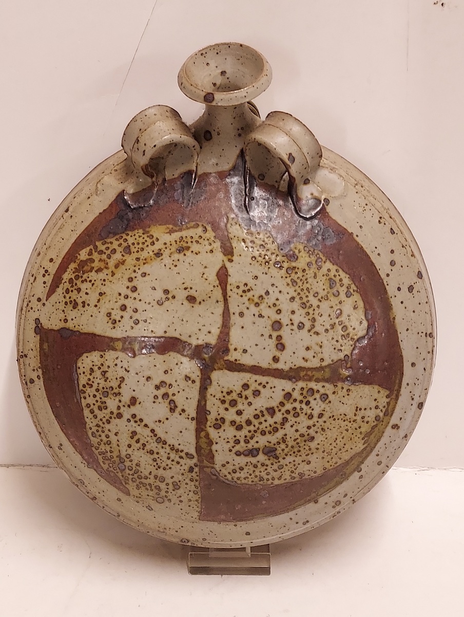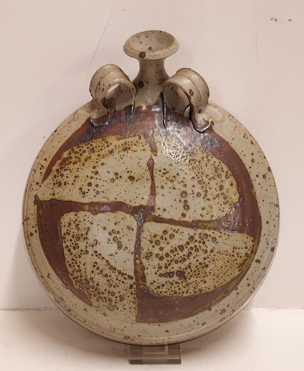 Wandvaas met bruin decor in gres glazuur.