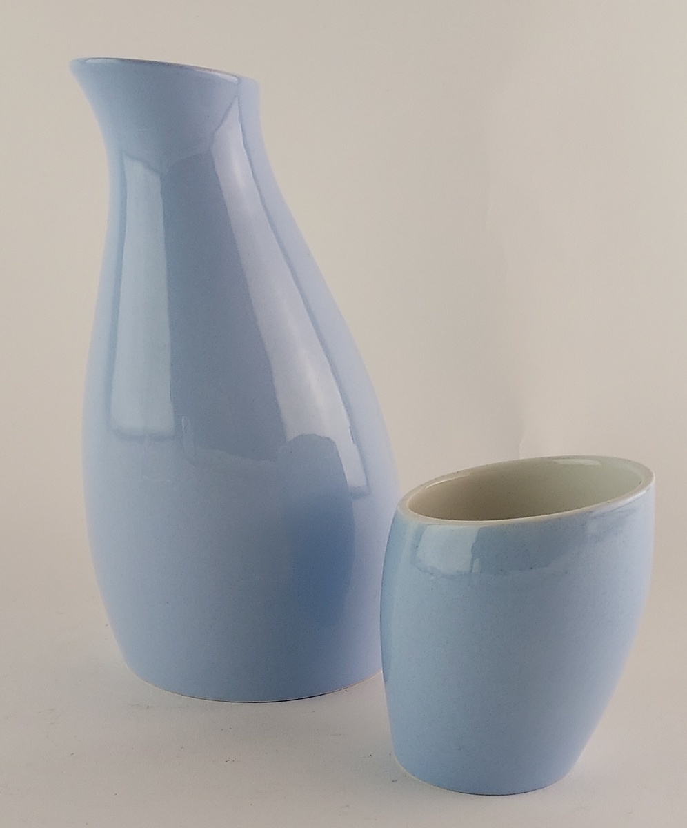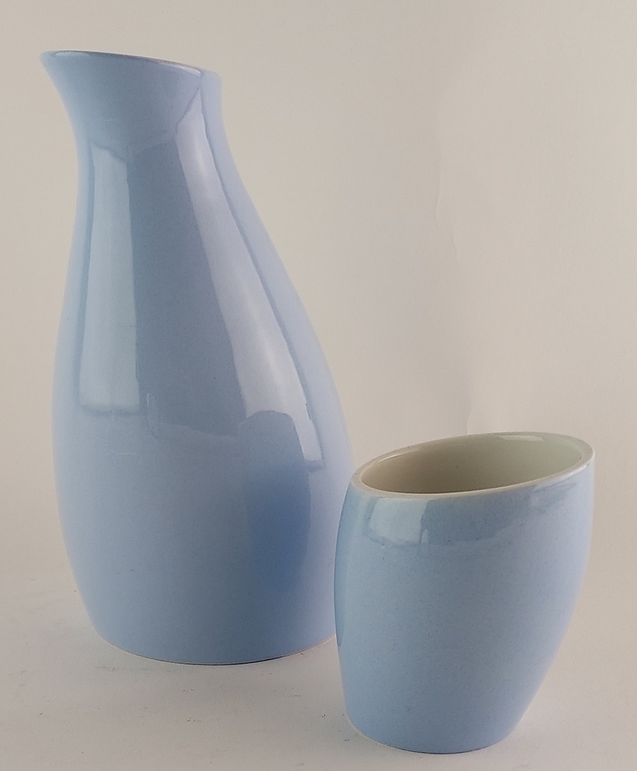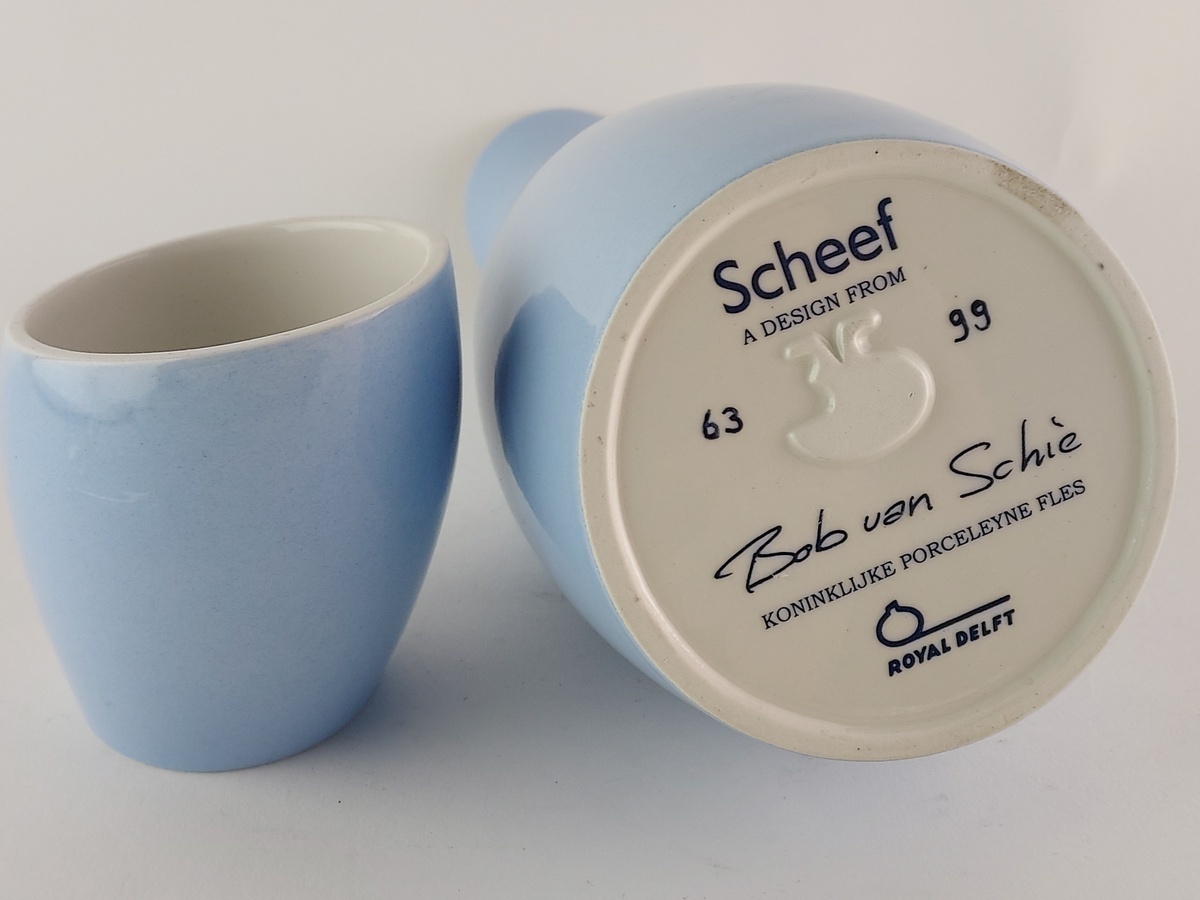 Waterkan met bijhorende beker "scheef". Uitvoering Porceleyne Fles Delft.