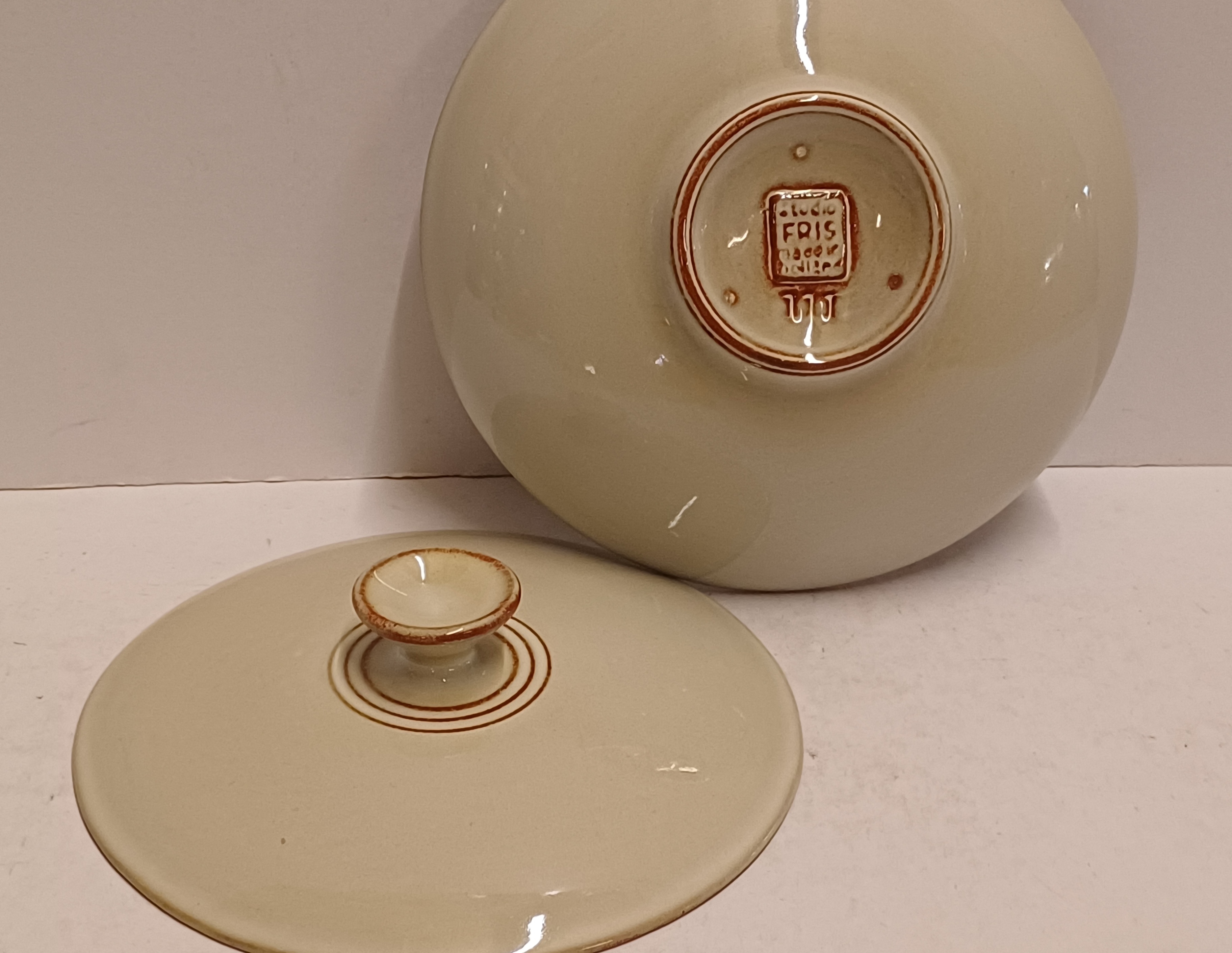 糖果盒,带有灰褐色釉面。底部带有工厂标志。设计于1952年。