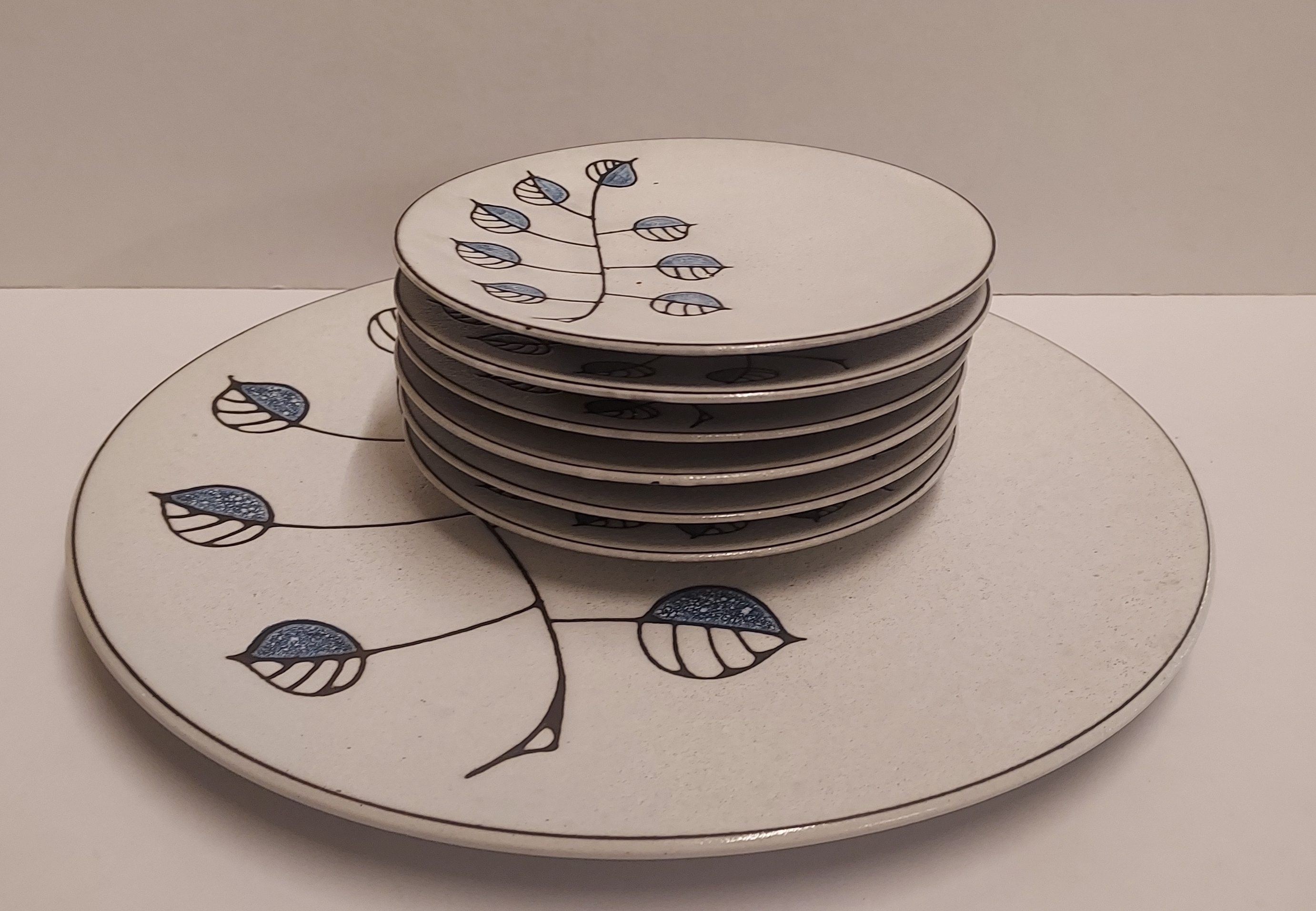 带有蓝色叶子装饰和白色锡釉。未签名。