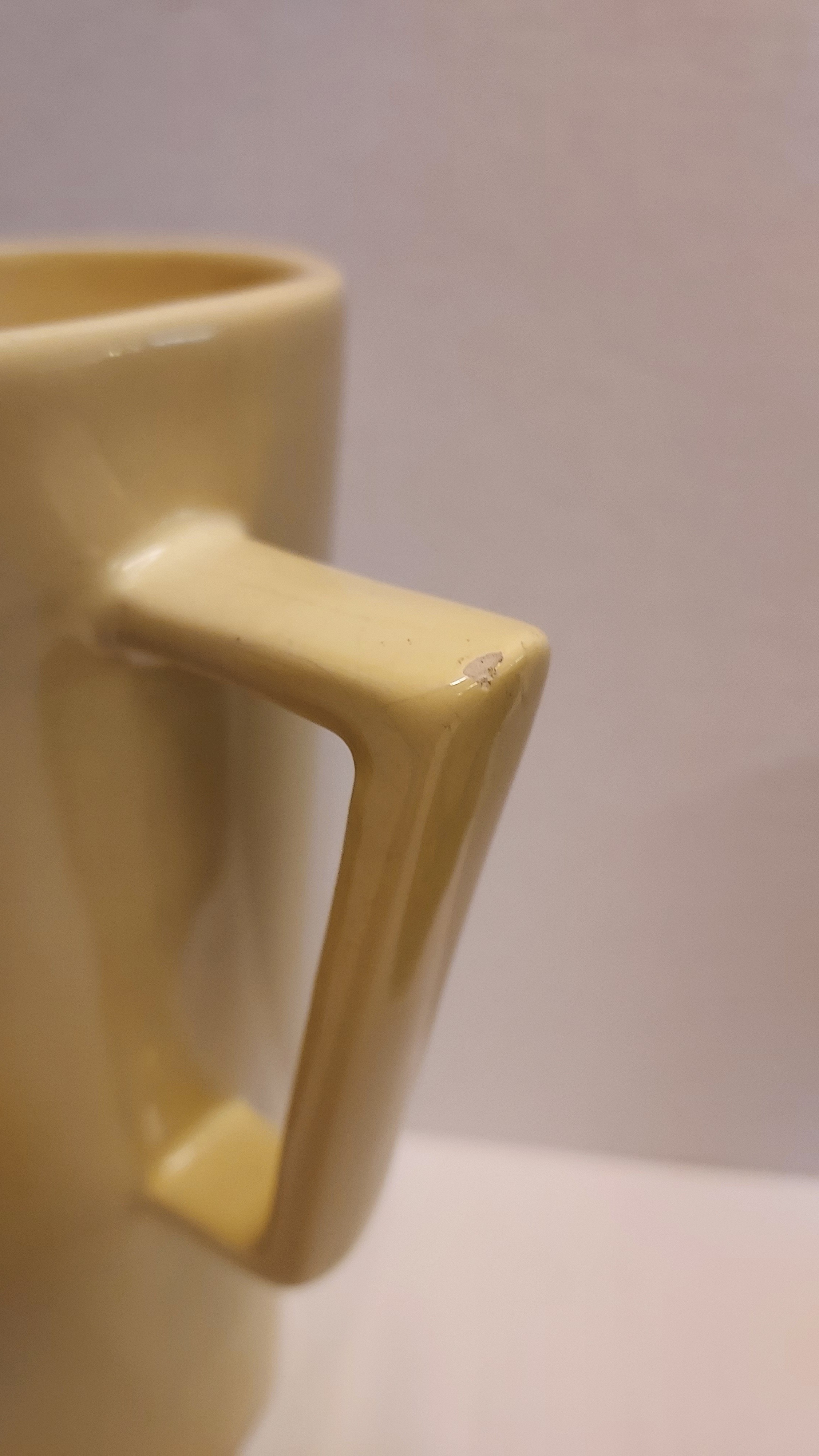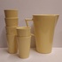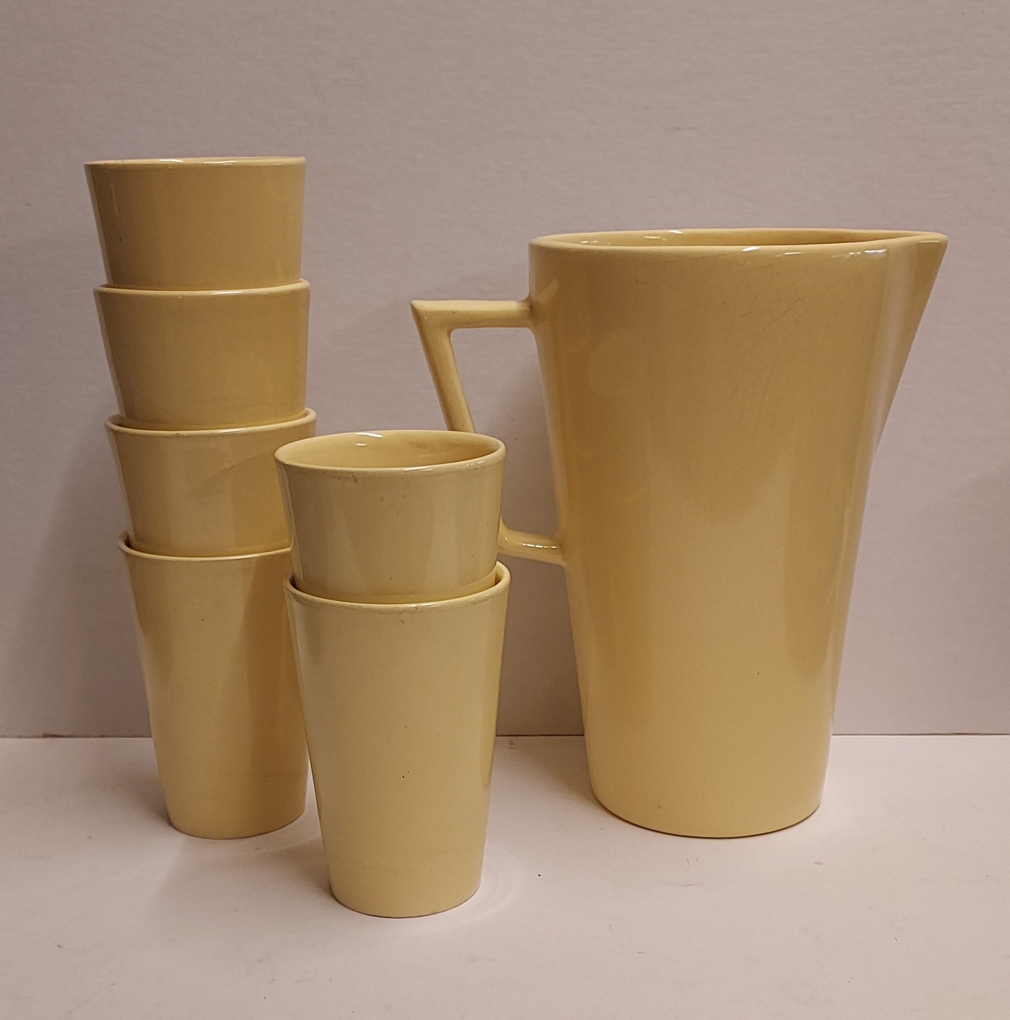 奶油色釉面牛奶罐,配有6个相应的杯子。罐子底部可能有标记。