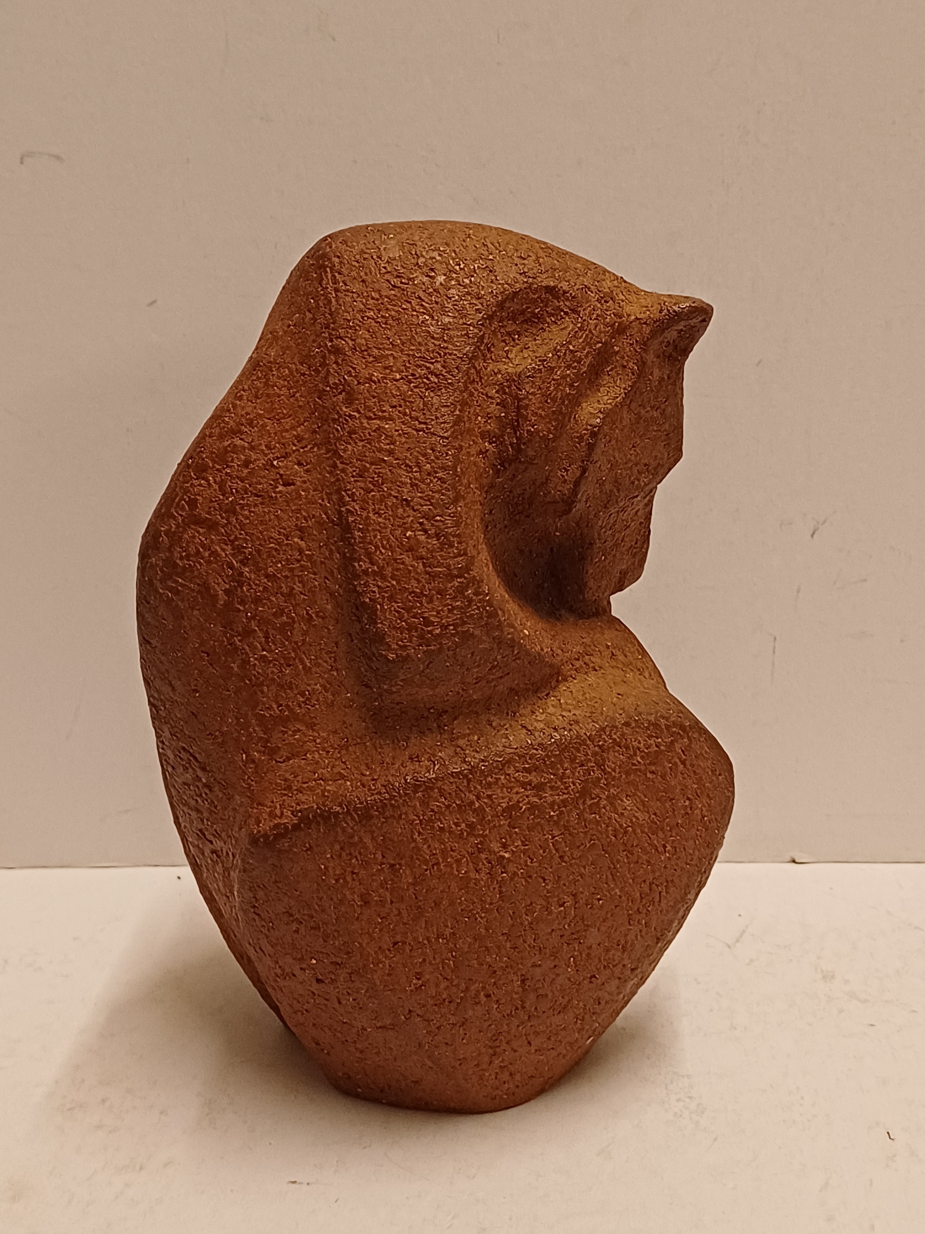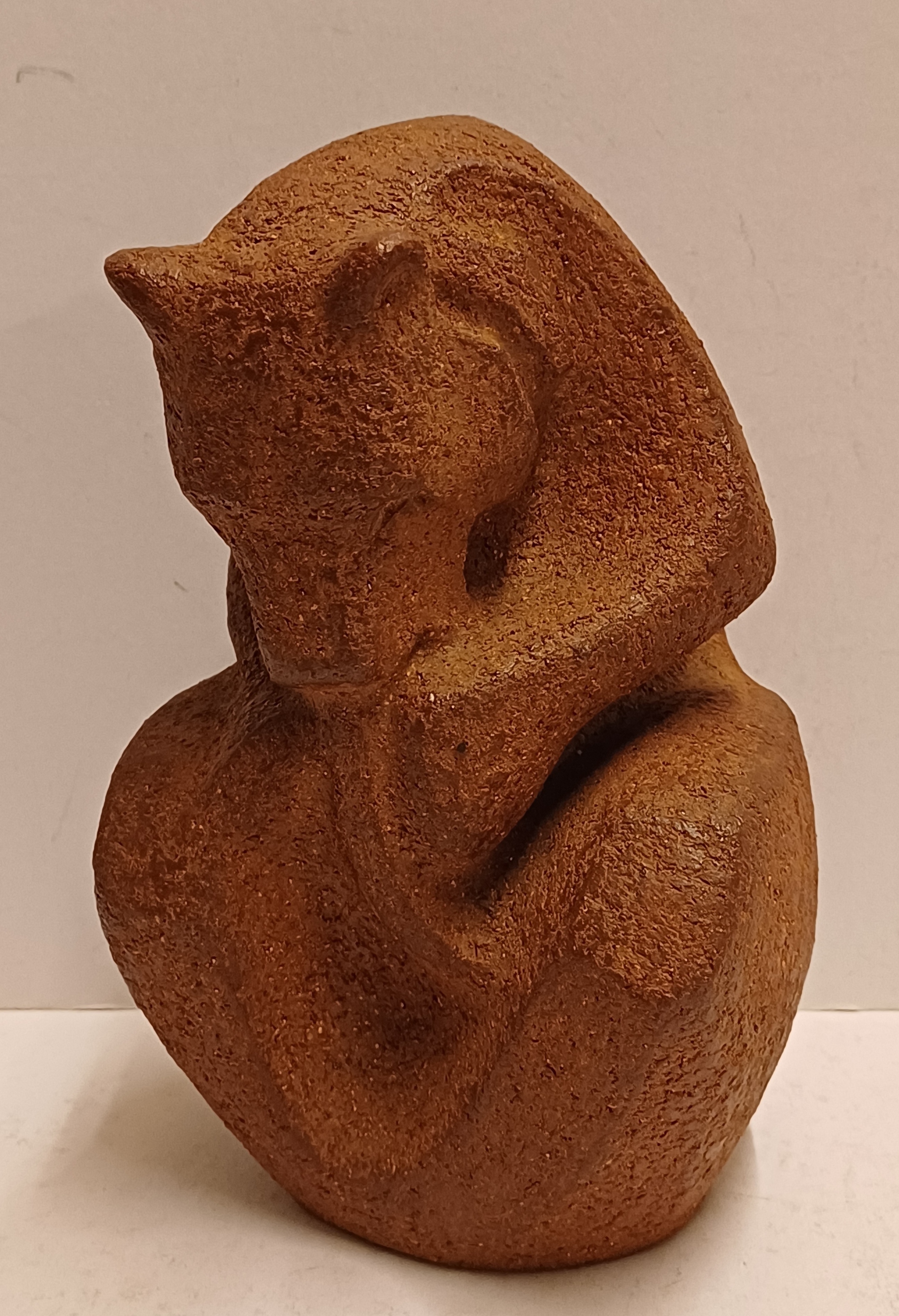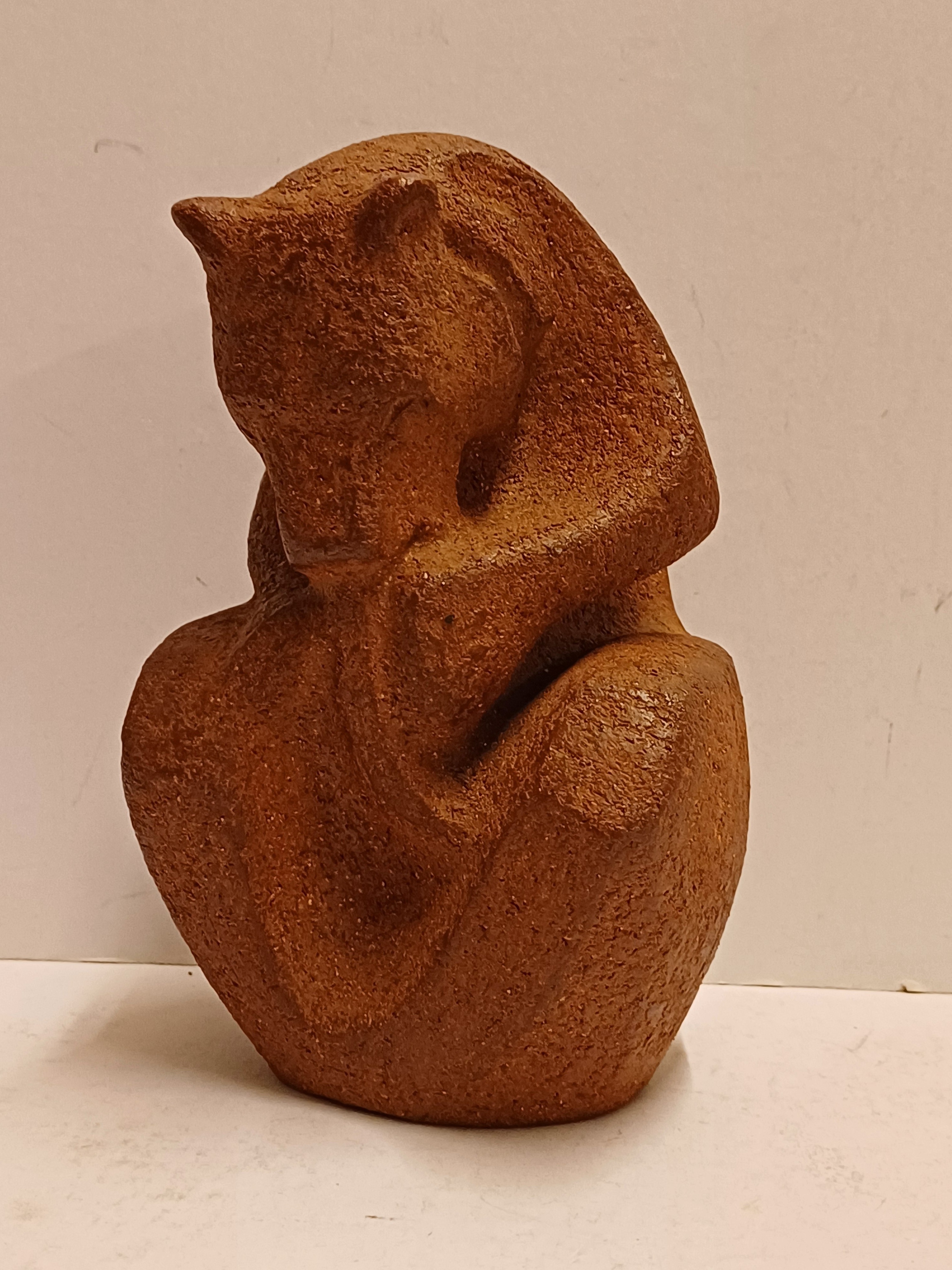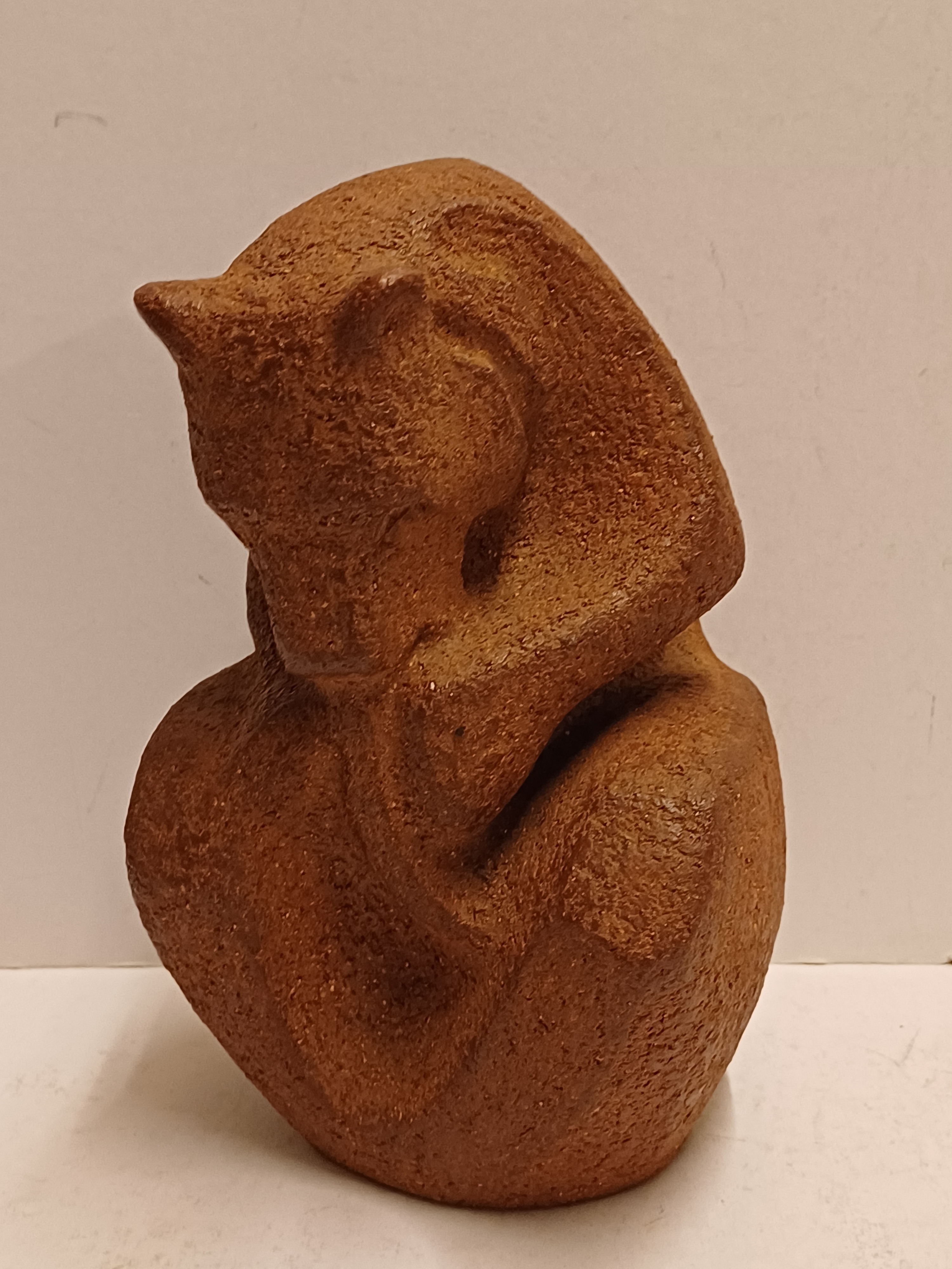 陶瓷石器手工制作的坐式熊。底部有标记和编号。
