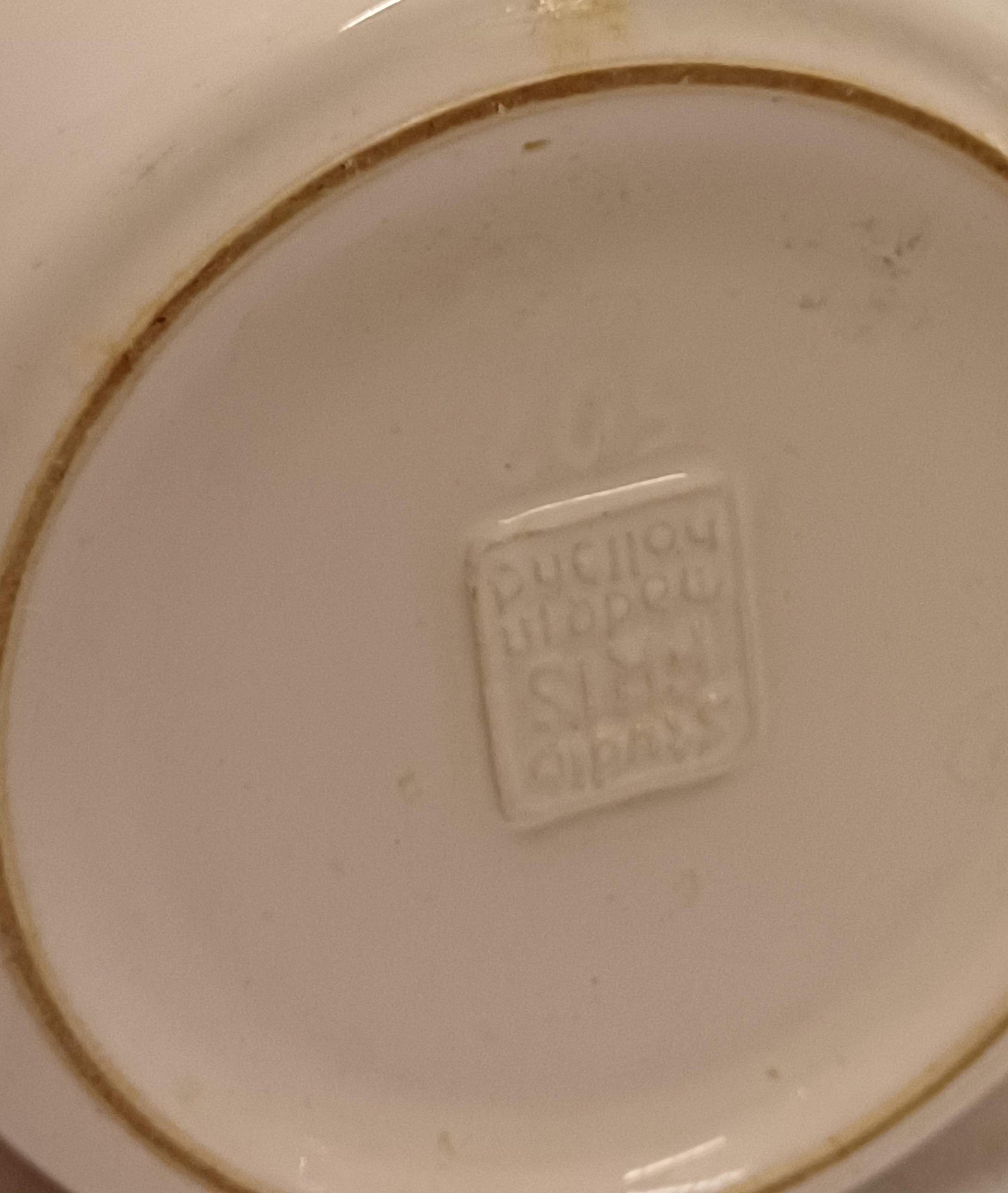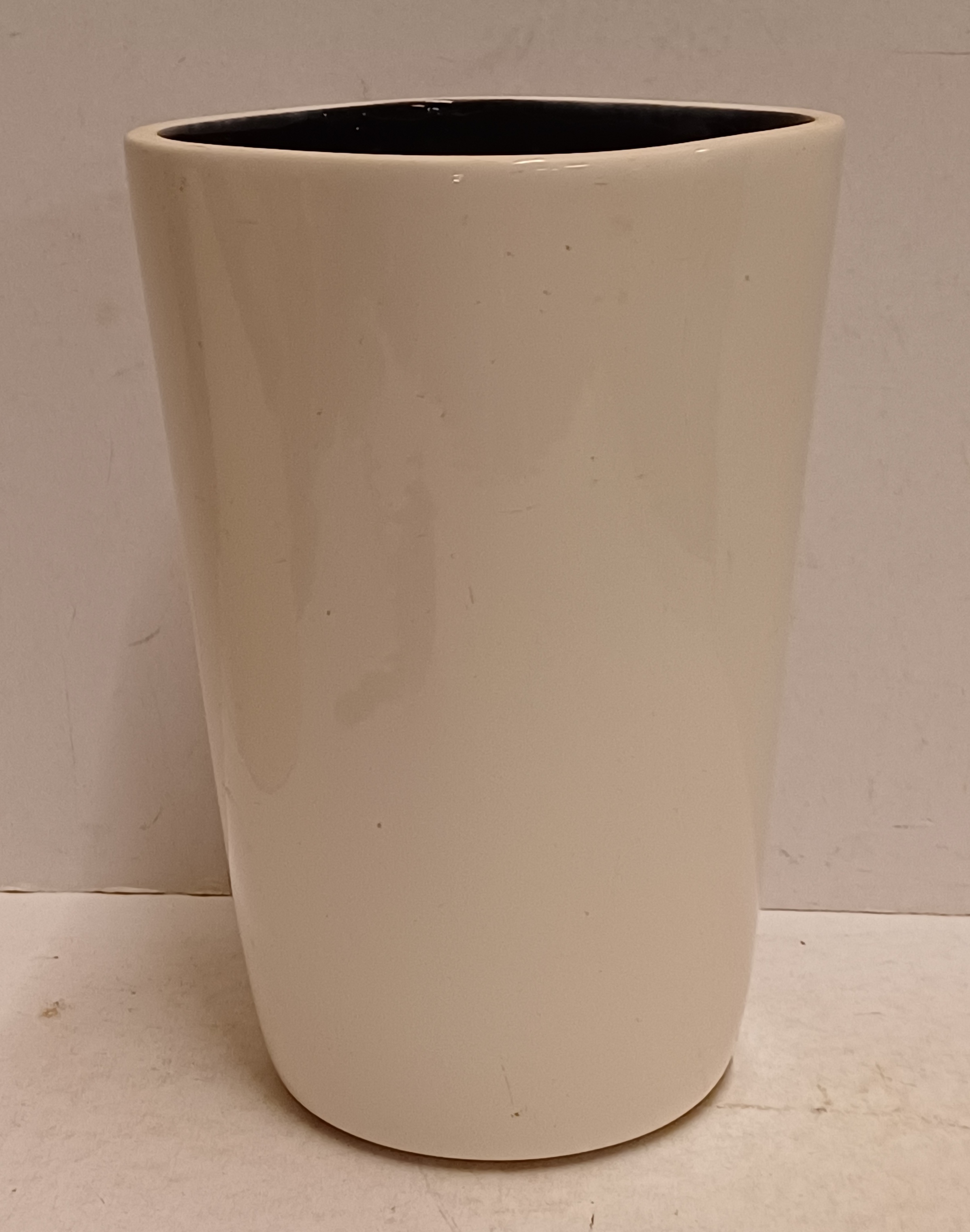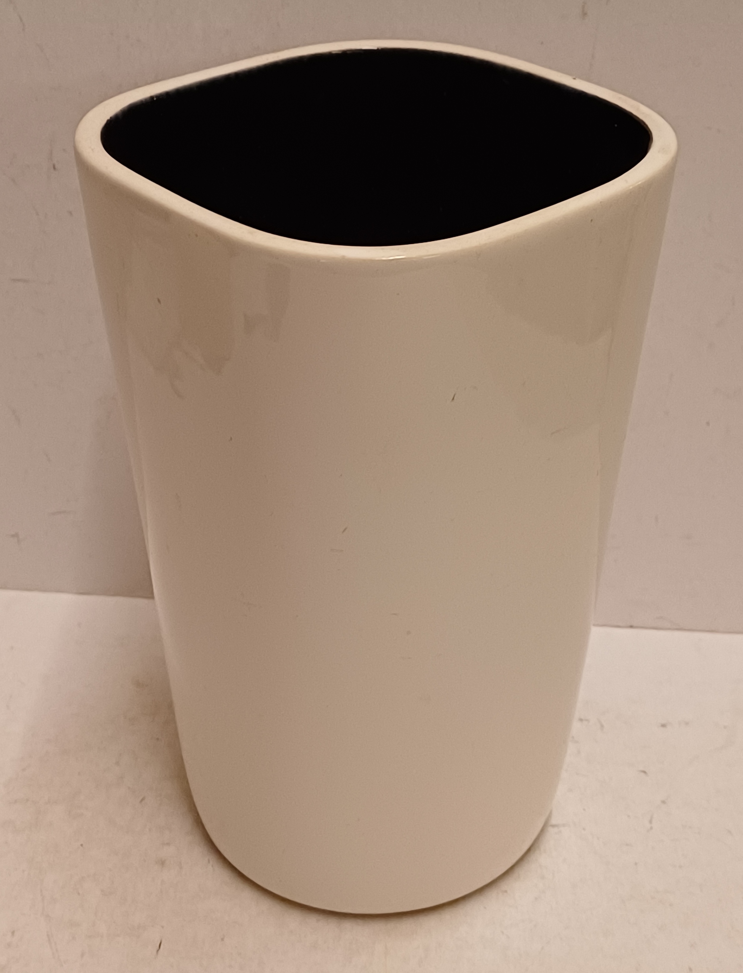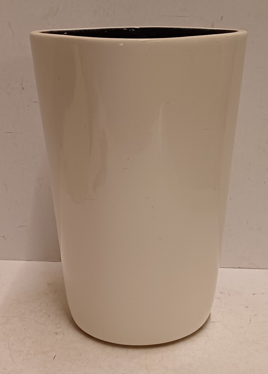Modelnummer 502 met glanzende witte buitenkant en zwarte binnenzijde. Onderzijde met fabrieksmerk