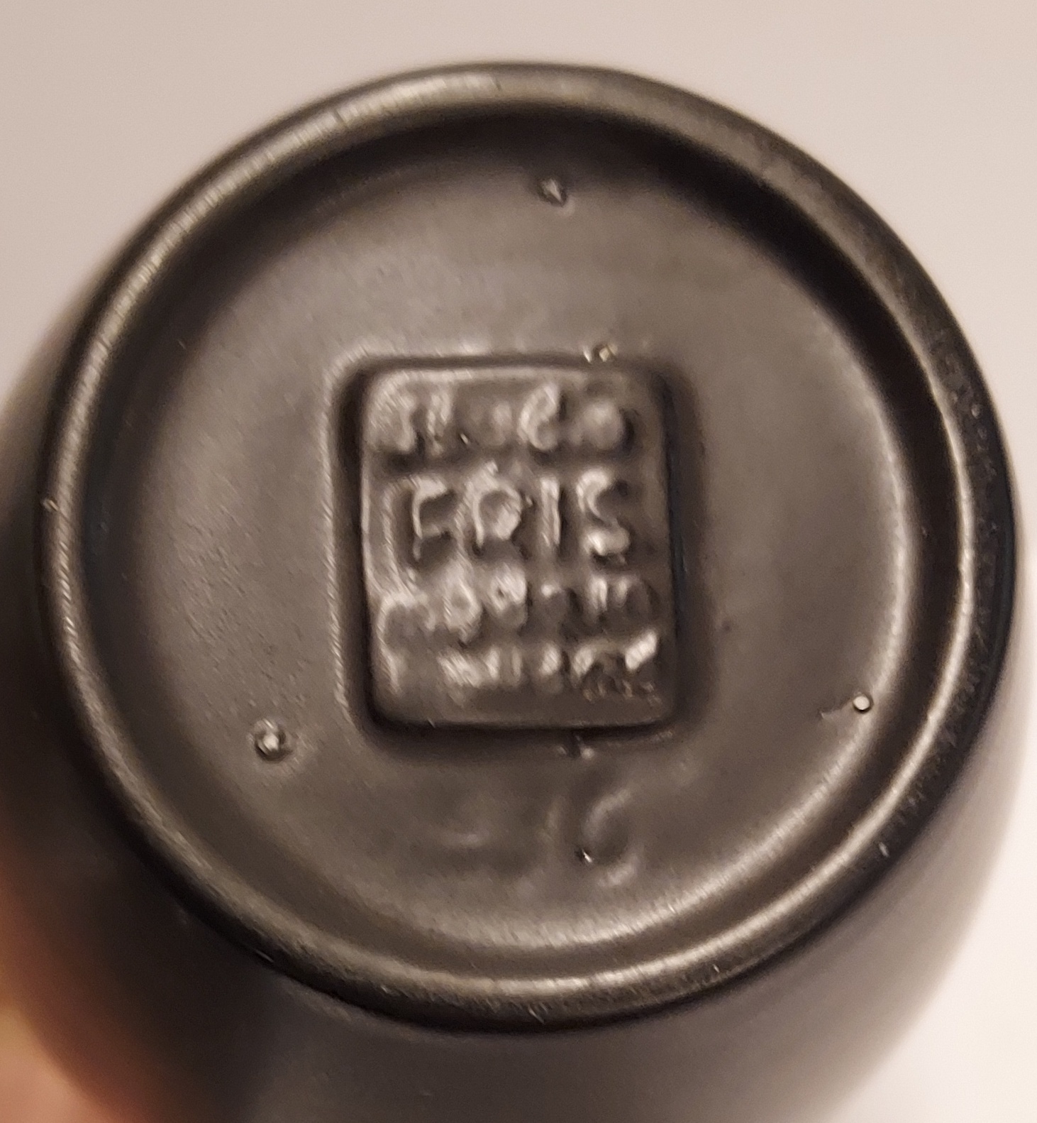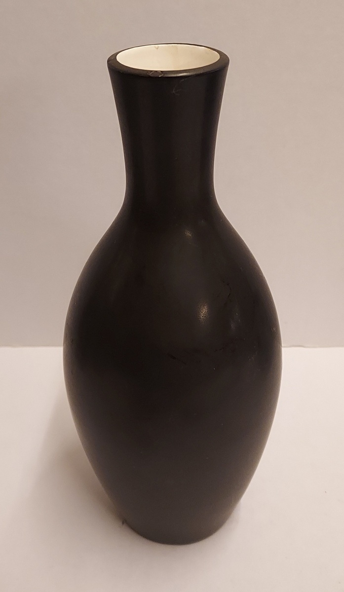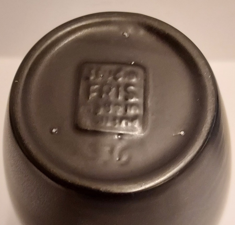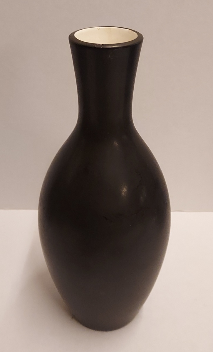 黑色釉面,内侧为白色。底部带有工厂标志。