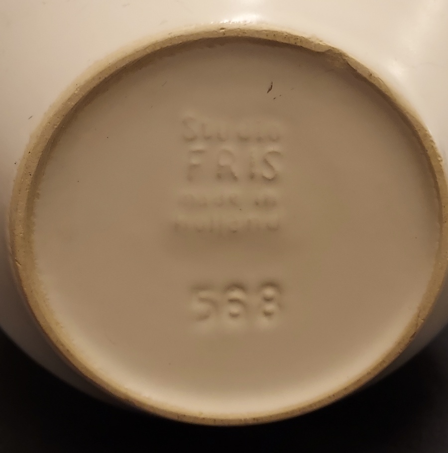 型号 568,带有棕色边和黄色内侧。底部带有工厂标志。
