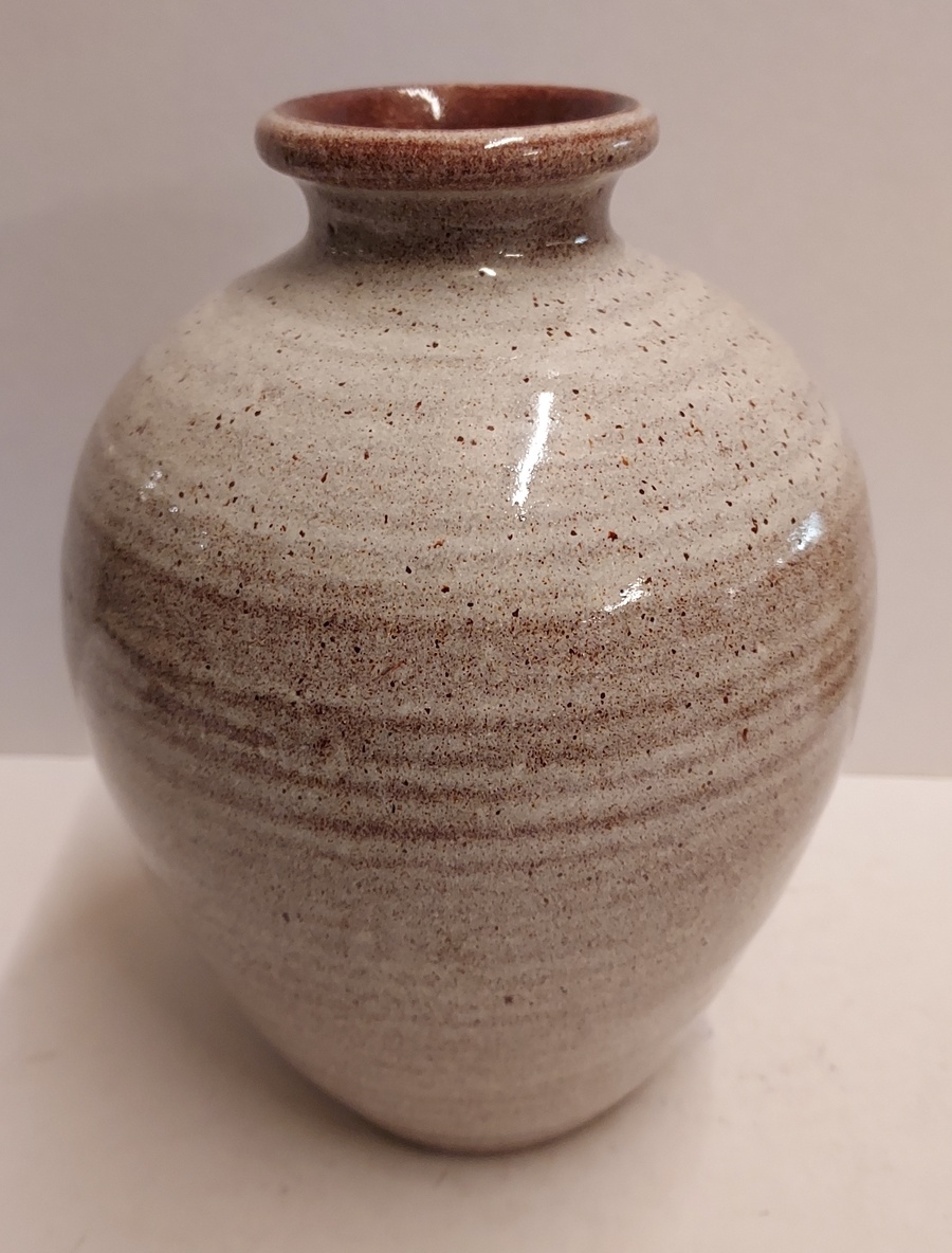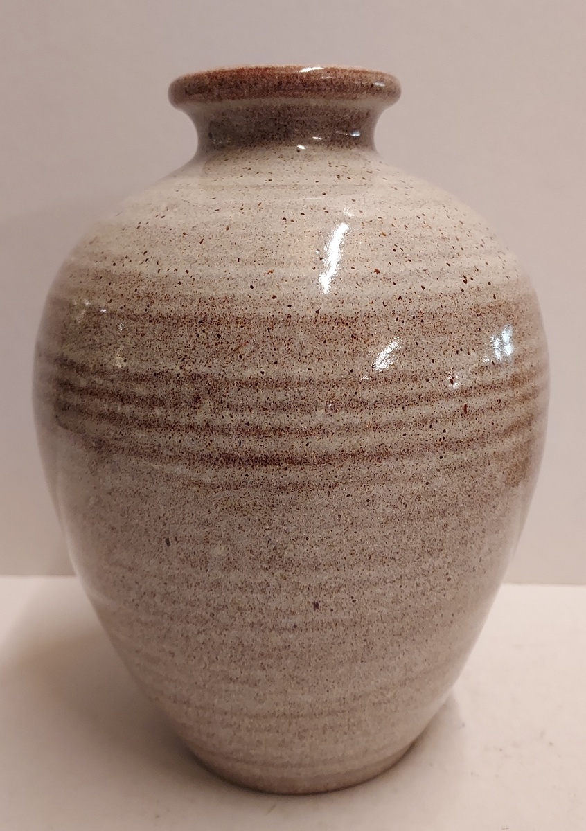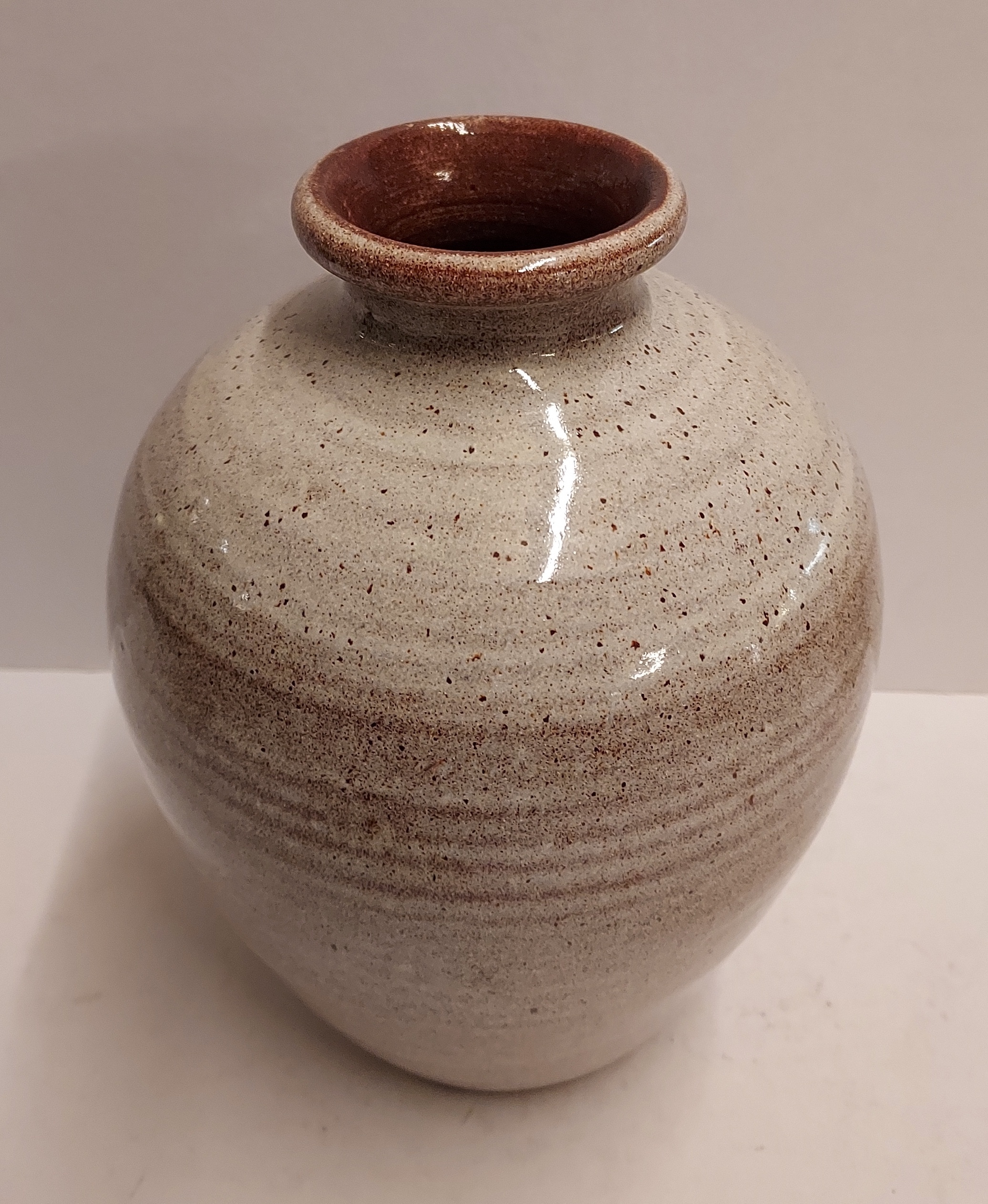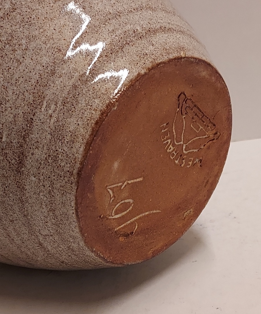 陶土花瓶,涂有灰色釉。底部有工厂标志。