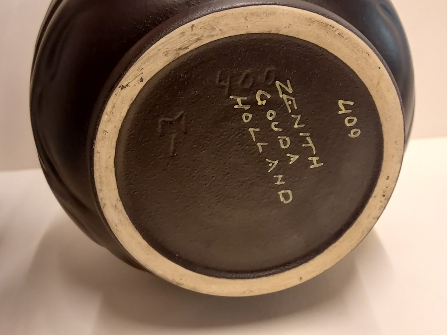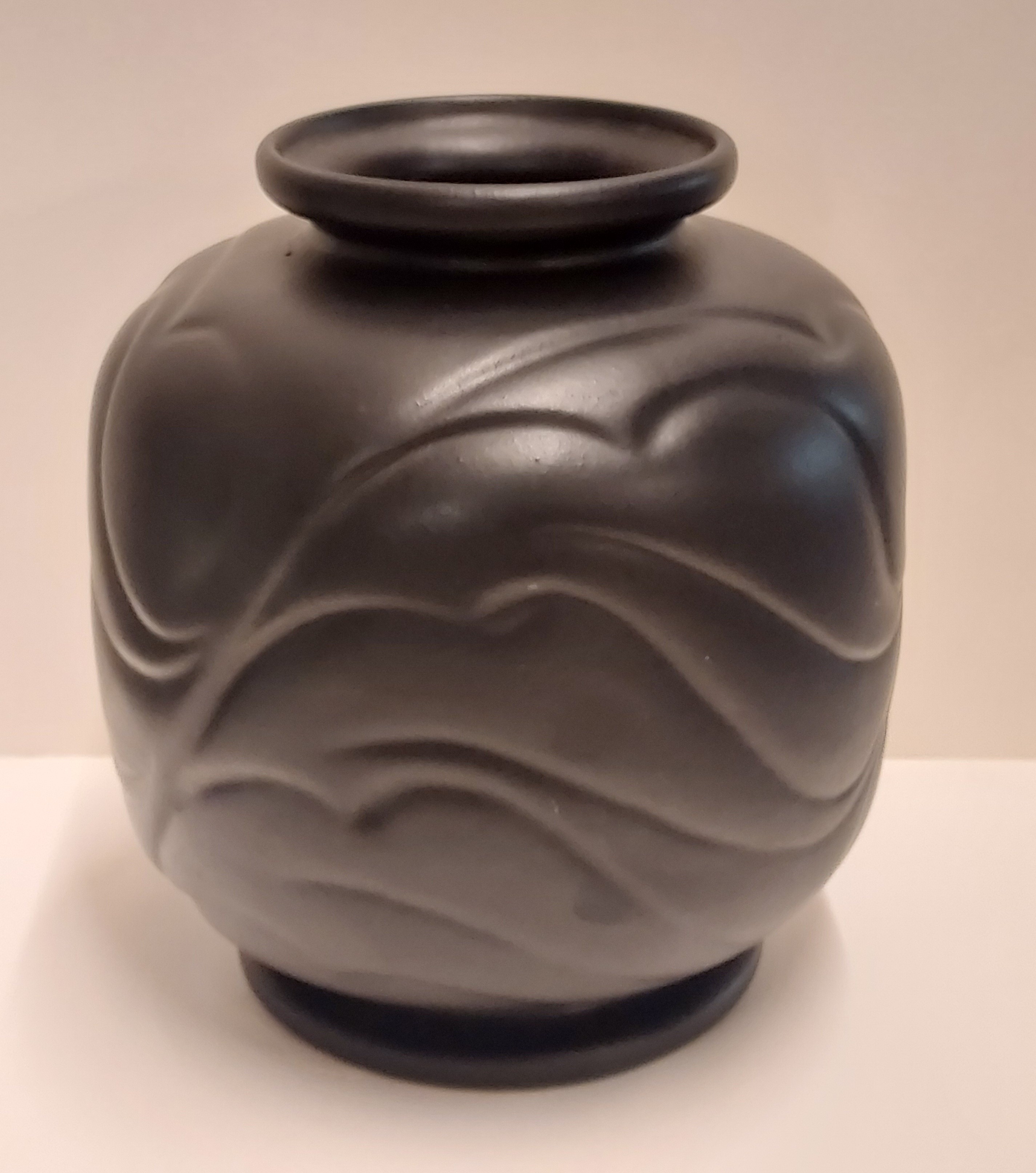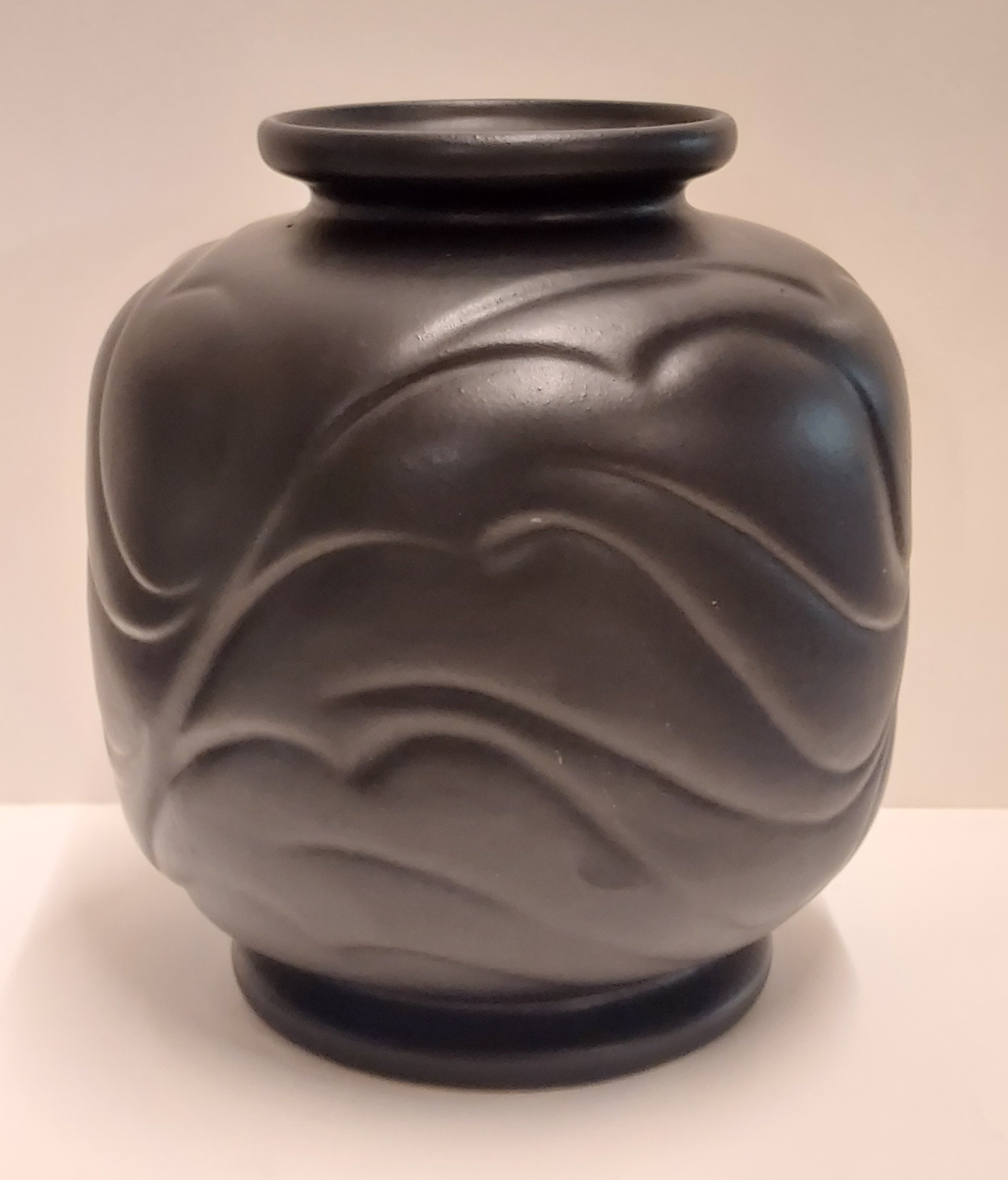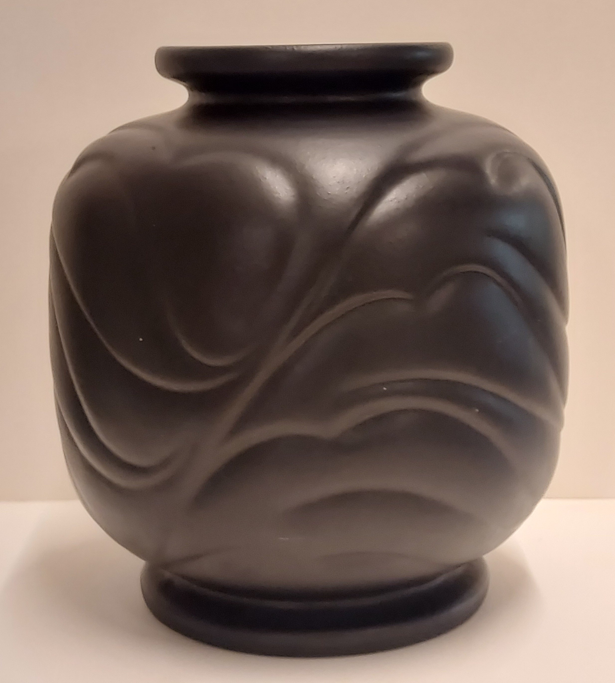 黑色花瓶,带有风格化的刻花装饰。型号 400,底部有标记。